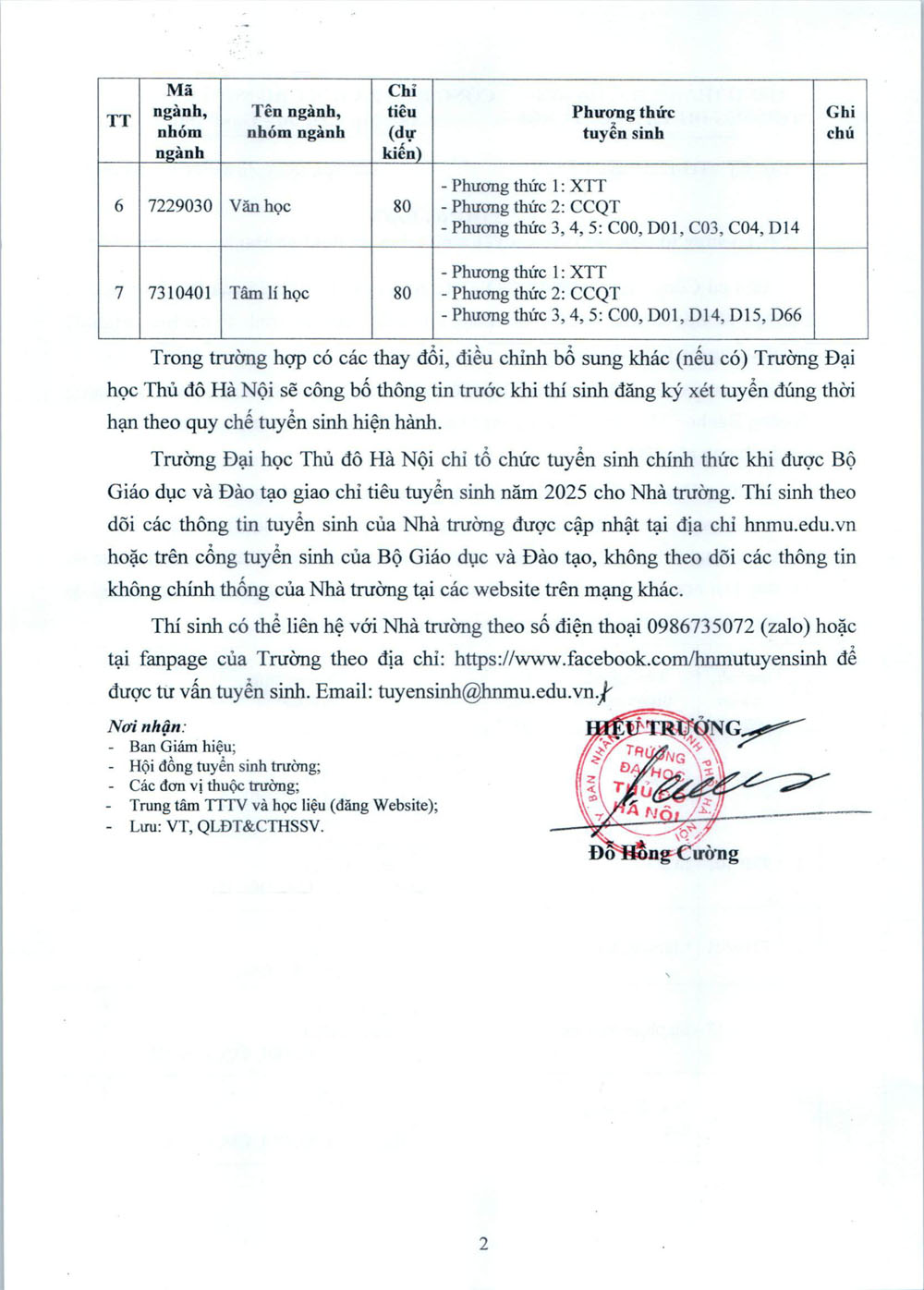 Đề án tuyển sinh trường Đại học Thủ đô Hà Nội 2024