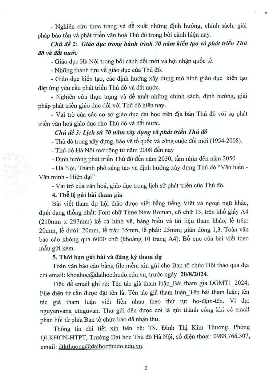 Đề án tuyển sinh trường Đại học Thủ đô Hà Nội 2024