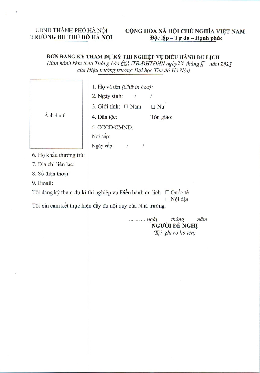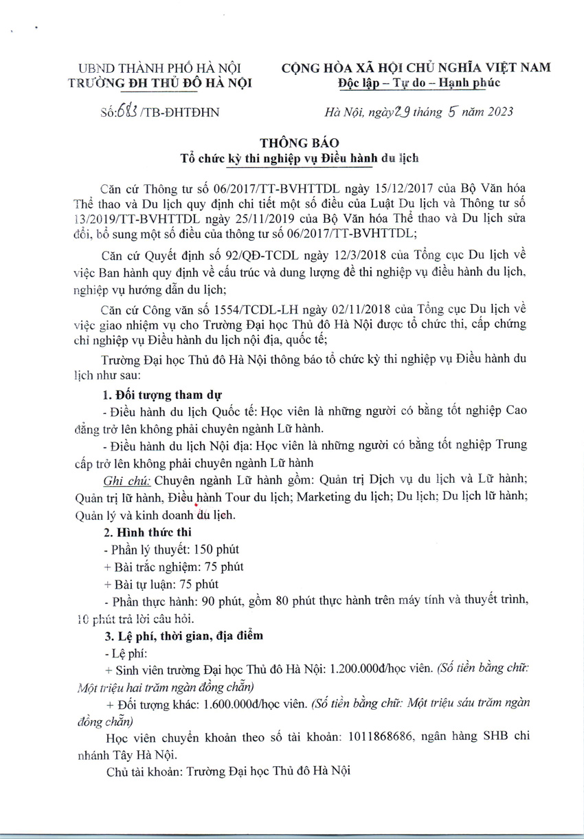 Thông báo tổ chức kỳ thi nghiệp vụ Điều hành du lịch