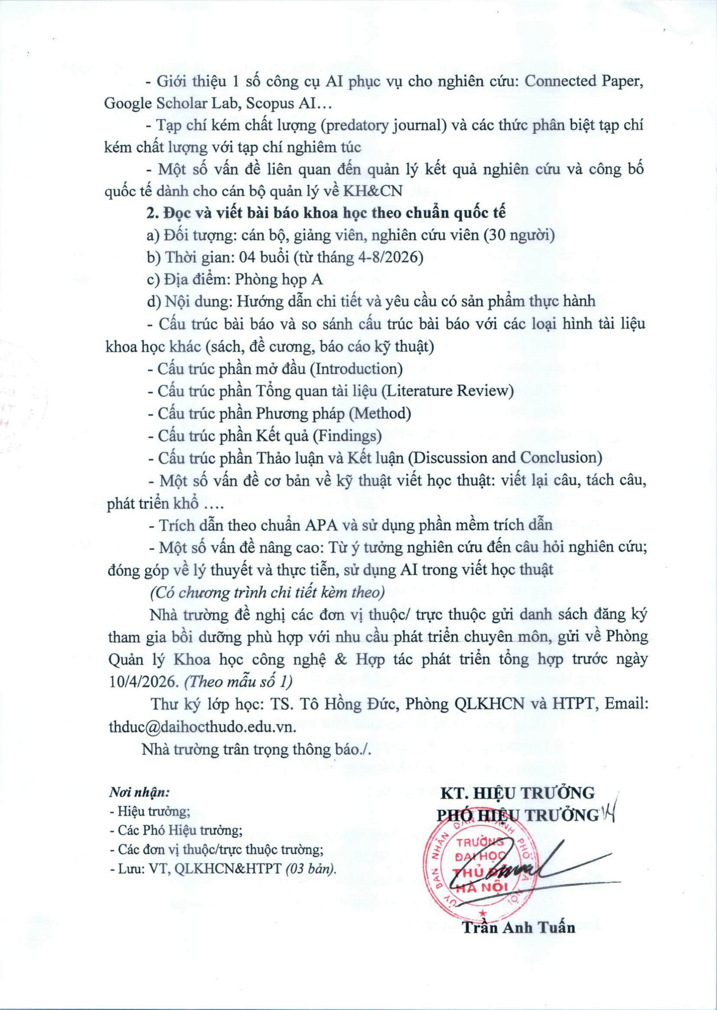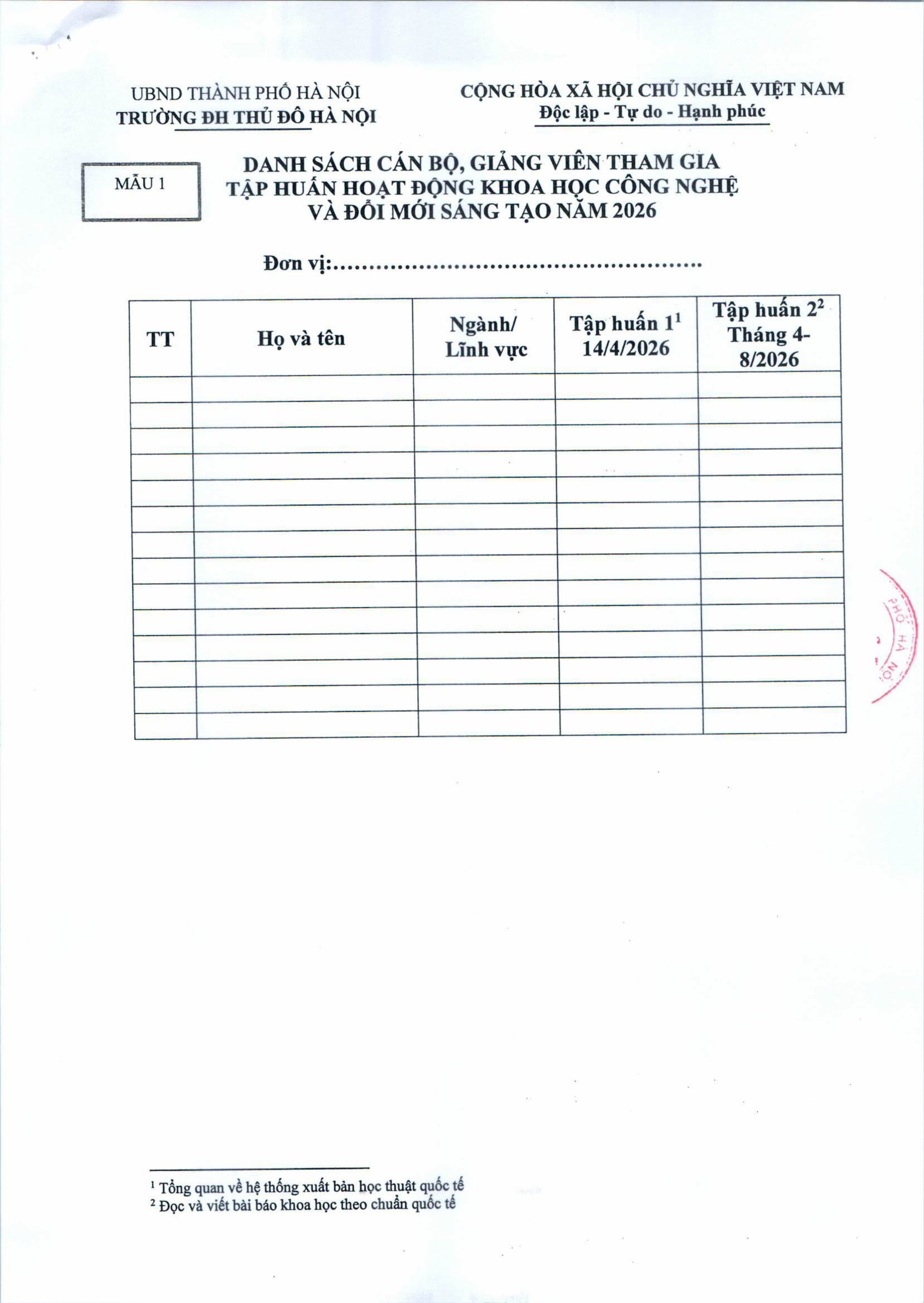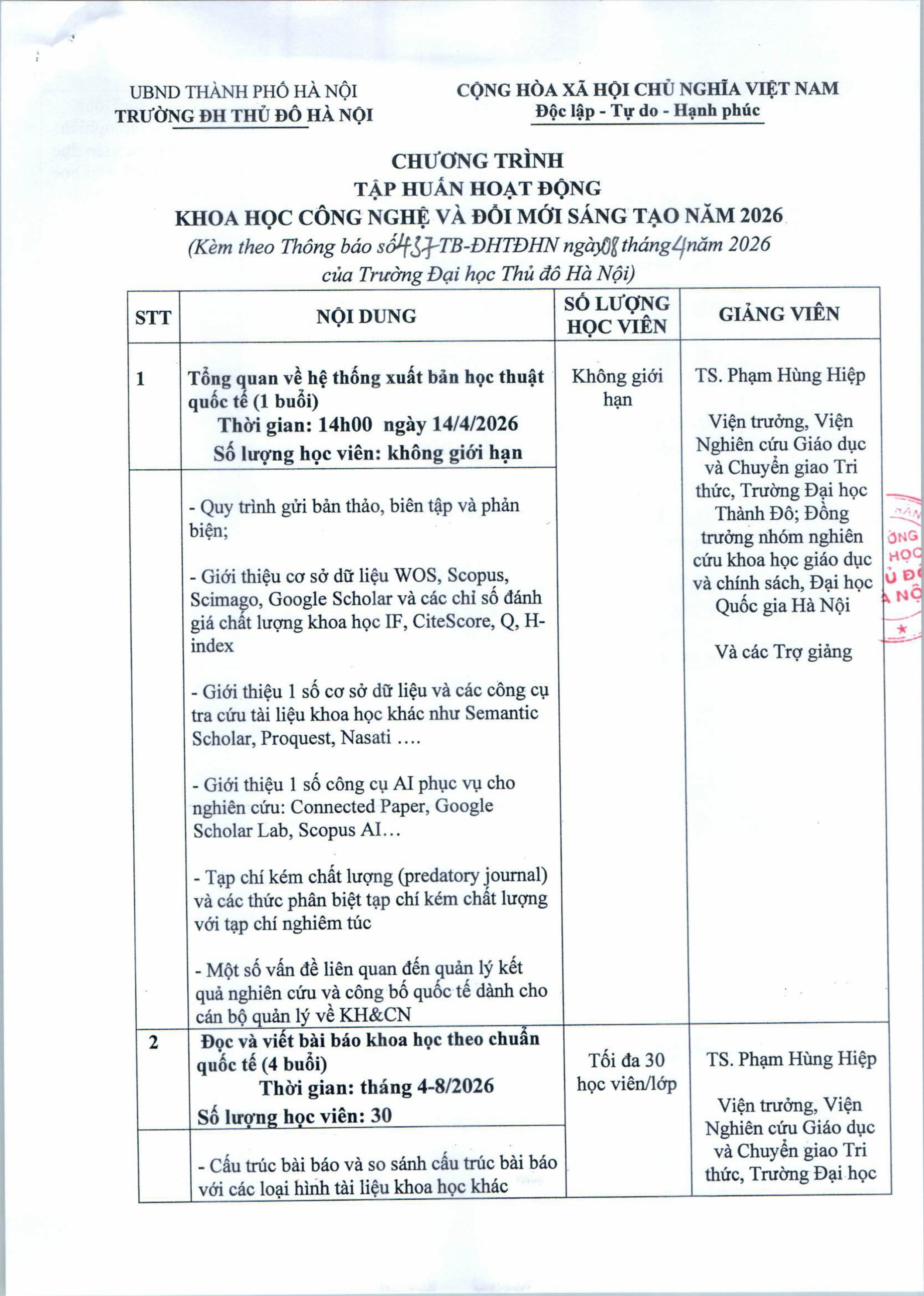 Thông báo tổ chức tập huấn về hoạt động Khoa học công nghệ và Đổi mới sáng tạo năm 2026