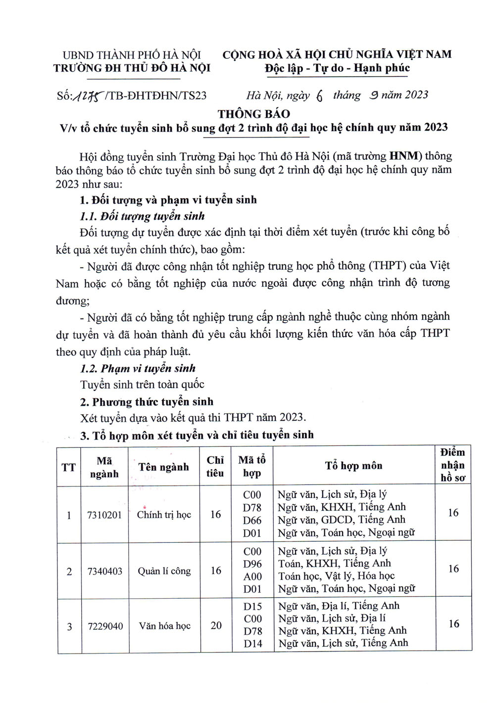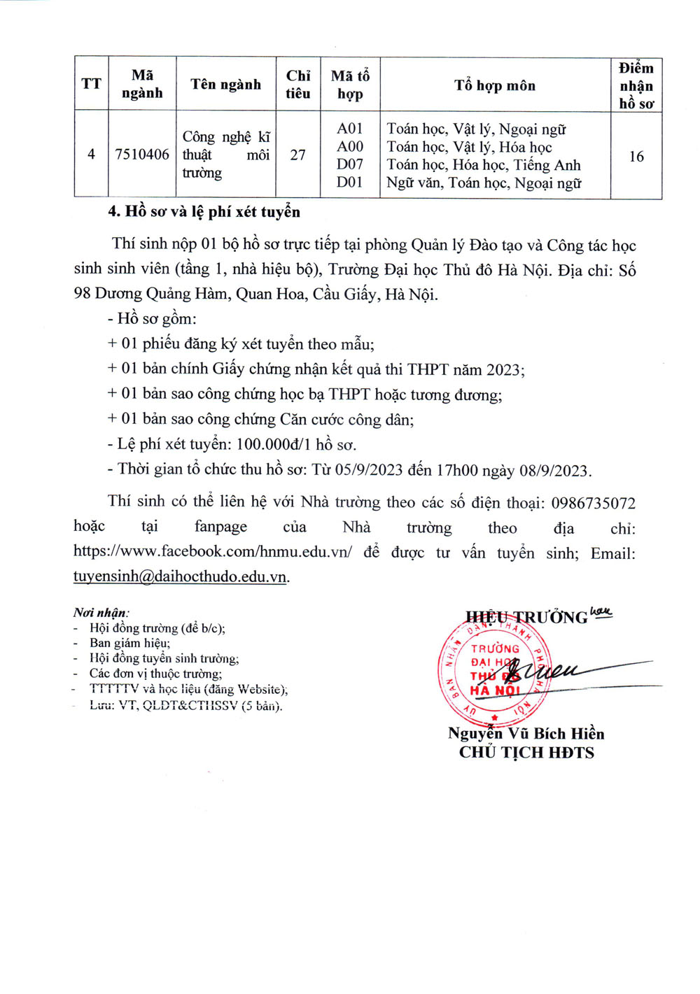 Đề án tuyển sinh trường Đại học Thủ đô Hà Nội 2024