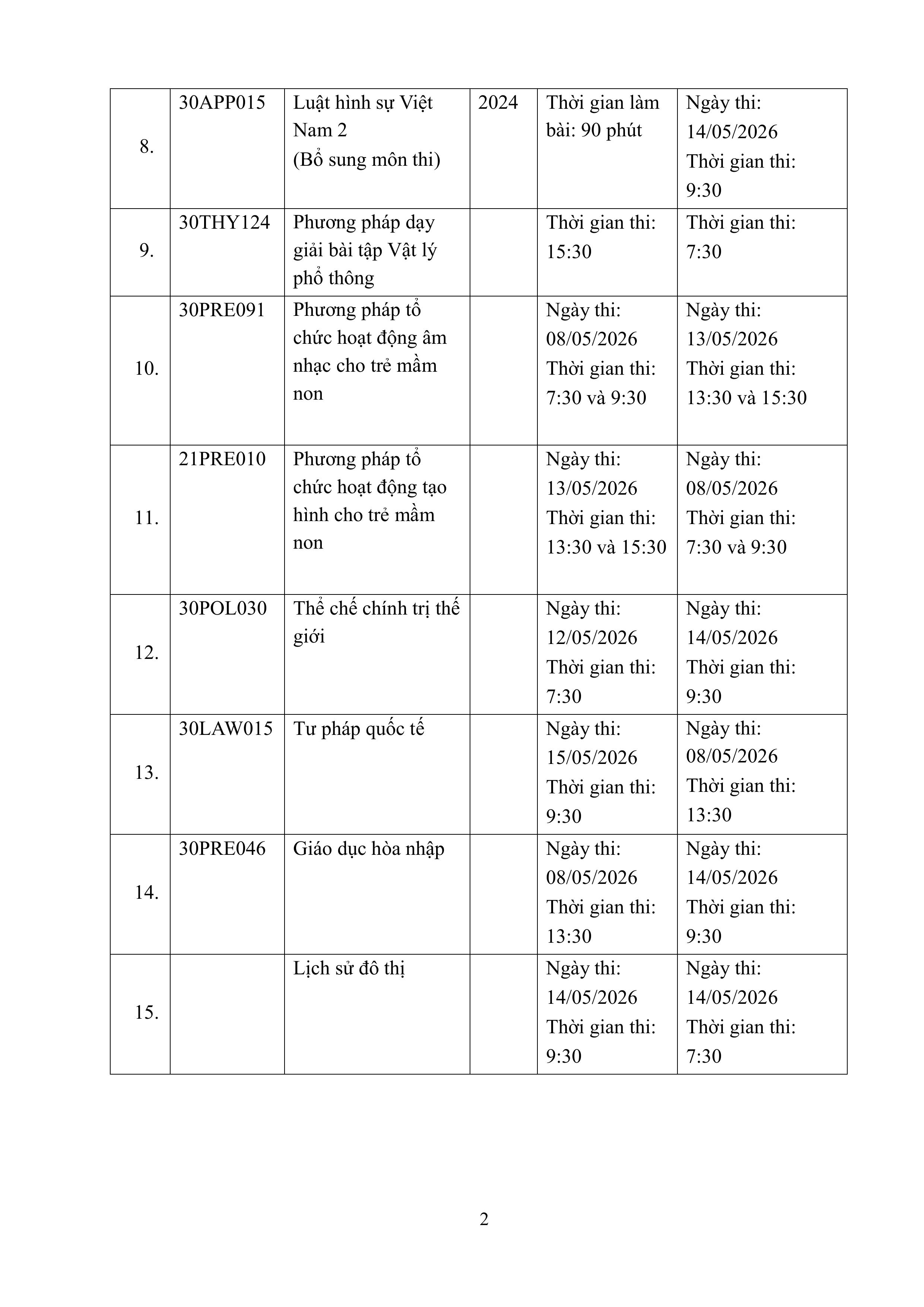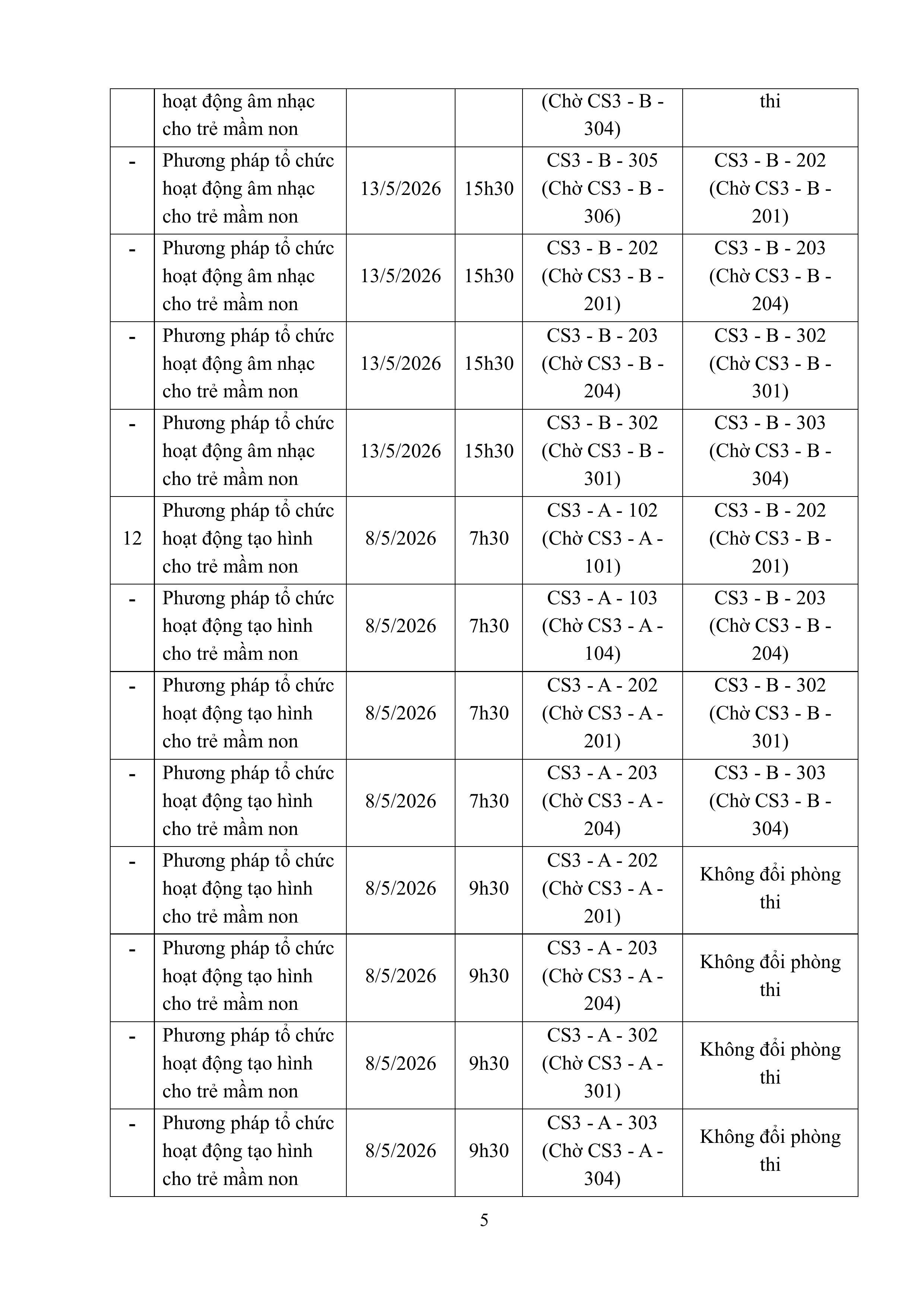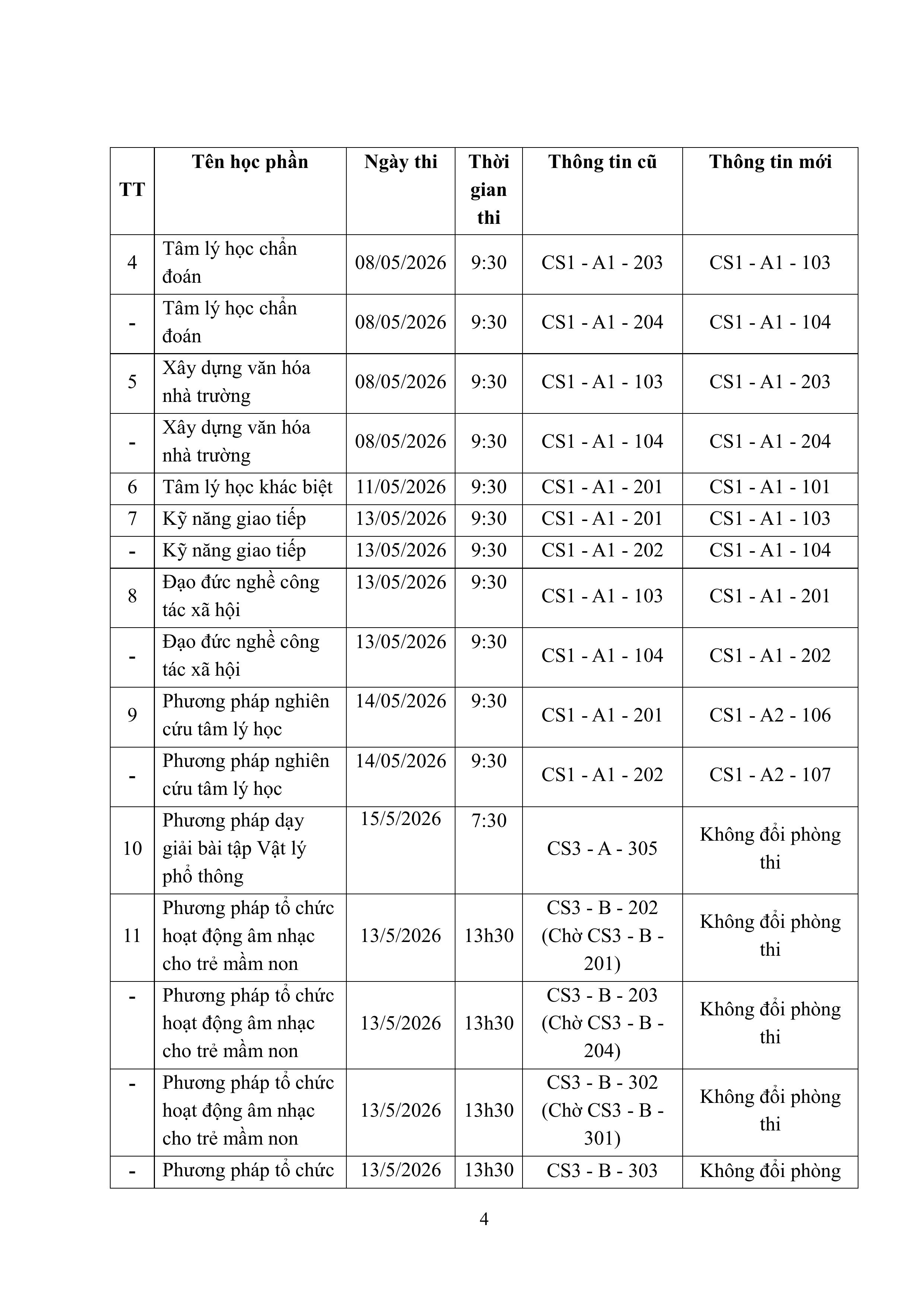 Thông báo điều chỉnh lịch thi kết thúc học phần học kỳ 2, năm học 2025 - 2026