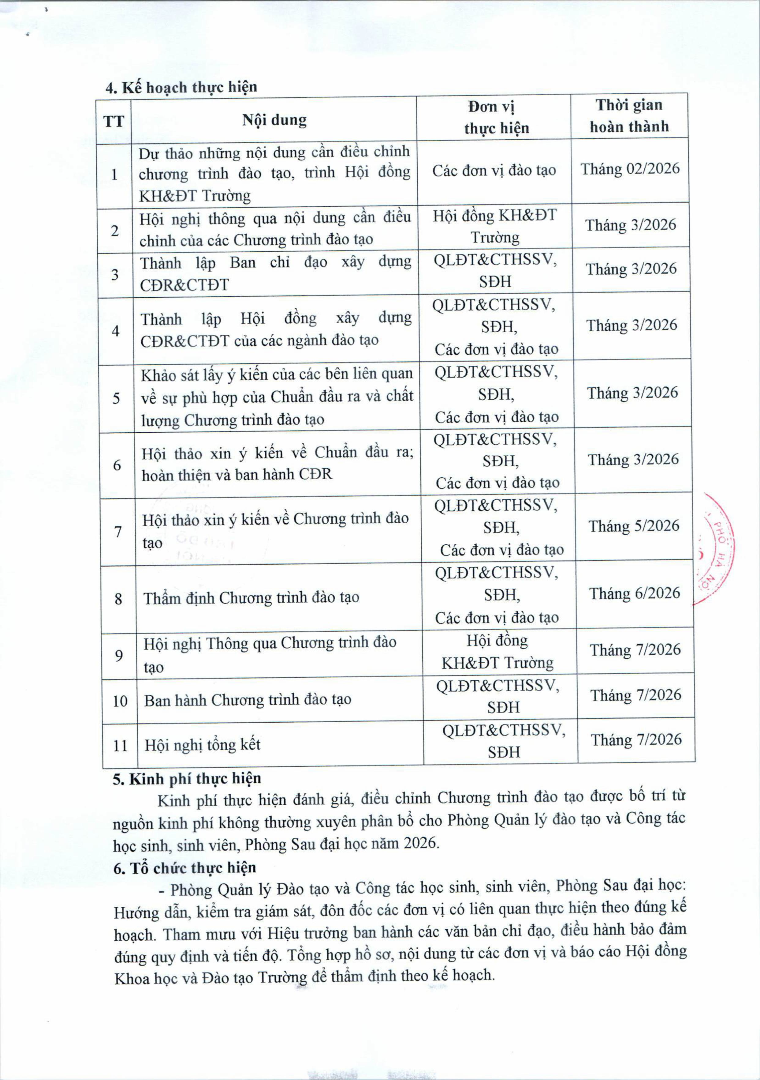 Thông báo kế hoạch đánh giá, điều chỉnh Chương trình đào tạo năm 2026