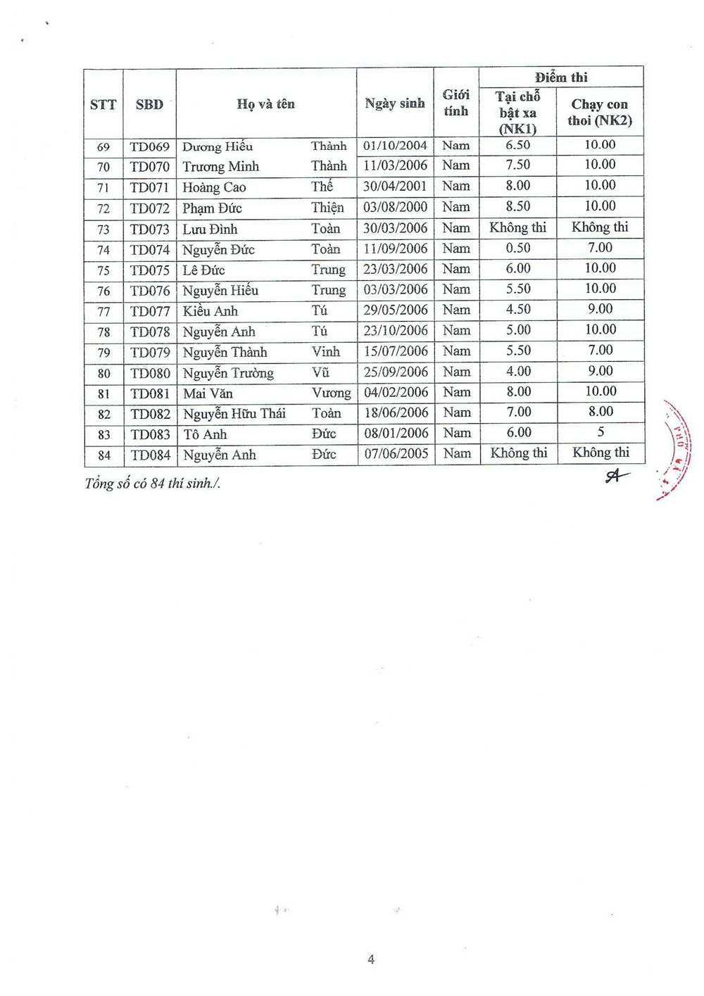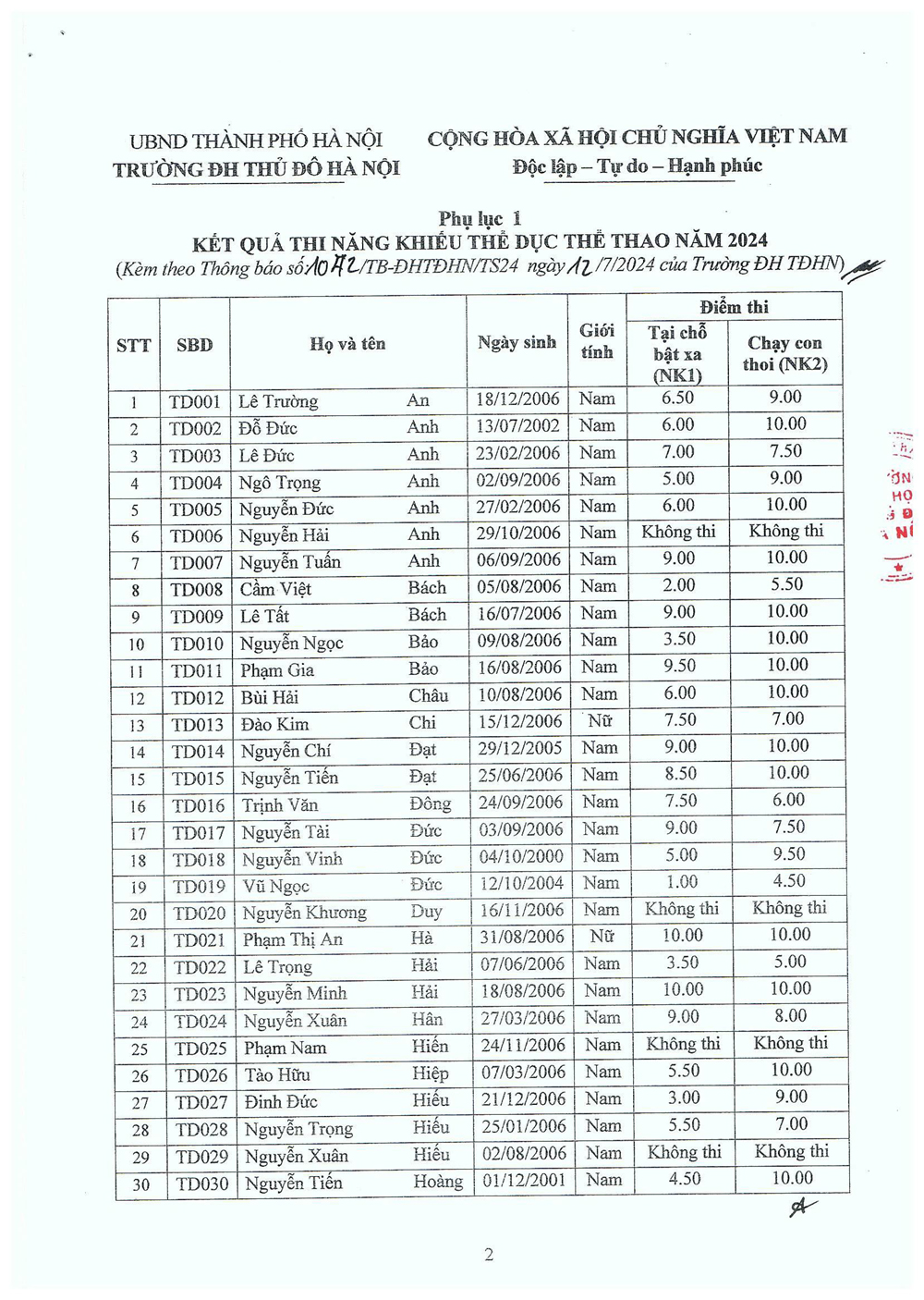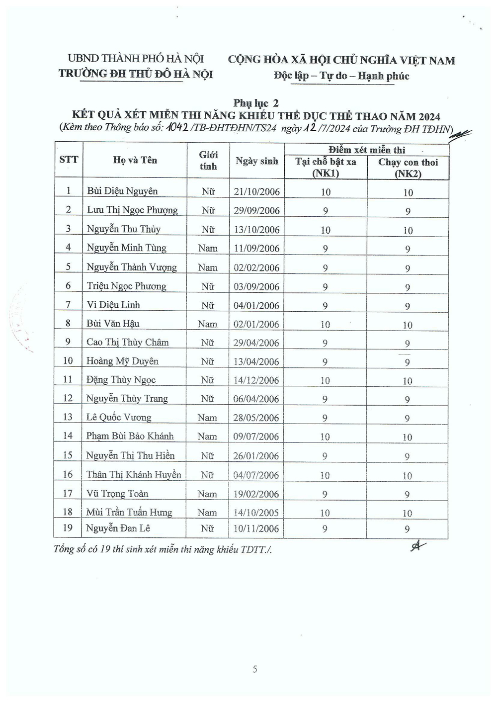 Thông báo kết quả thi năng khiếu Thể dục thể thao và xét miễn thi năng khiếu Thể dục thể thao năm 2024