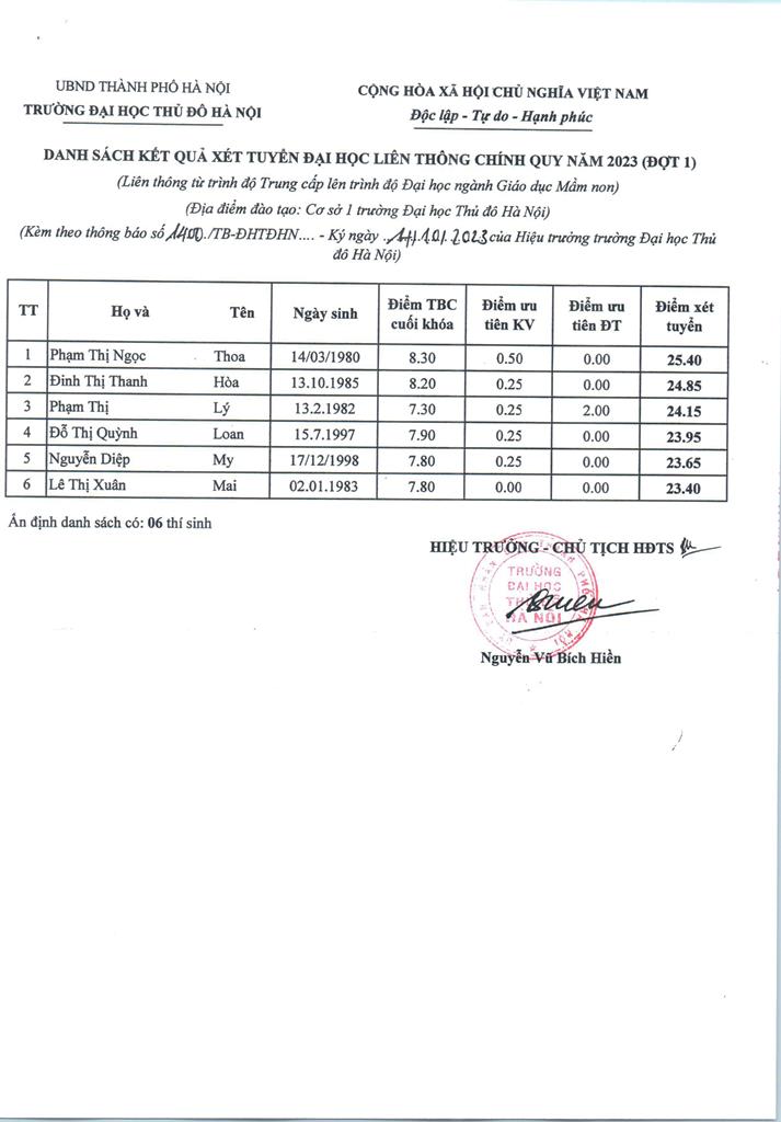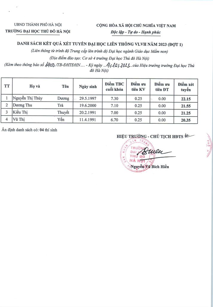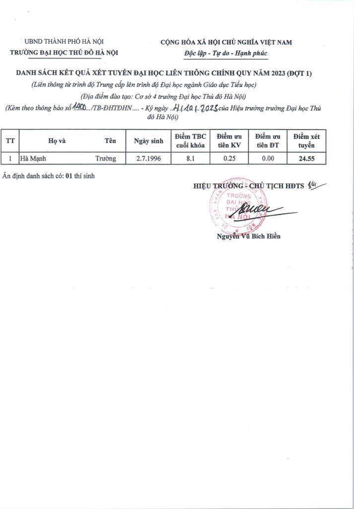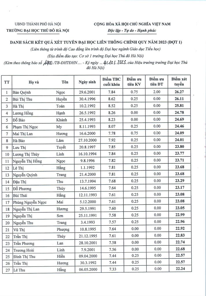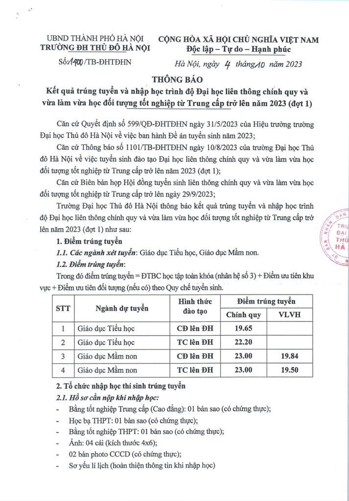 Thông báo kết quả trúng tuyển và nhập học trình độ Đại học liên thông chính quy và vừa làm vừa học đối tượng tốt nghiệp từ Trung cấp trở lên năm 2023