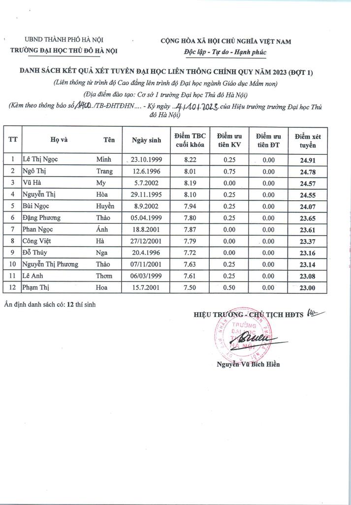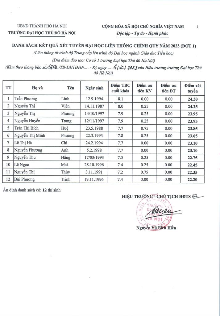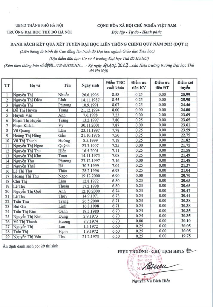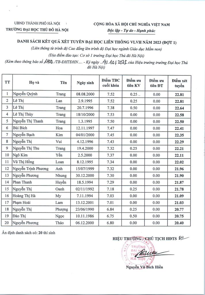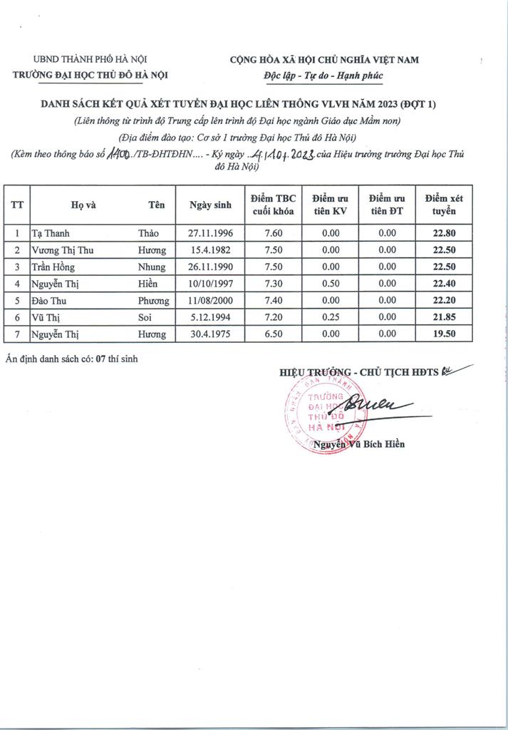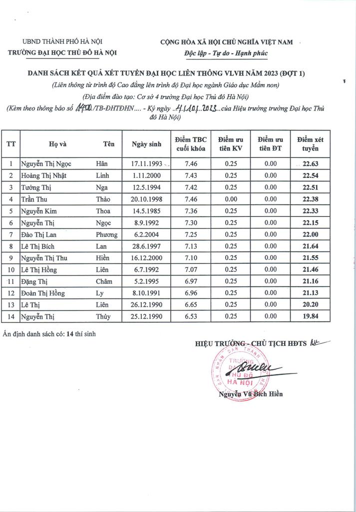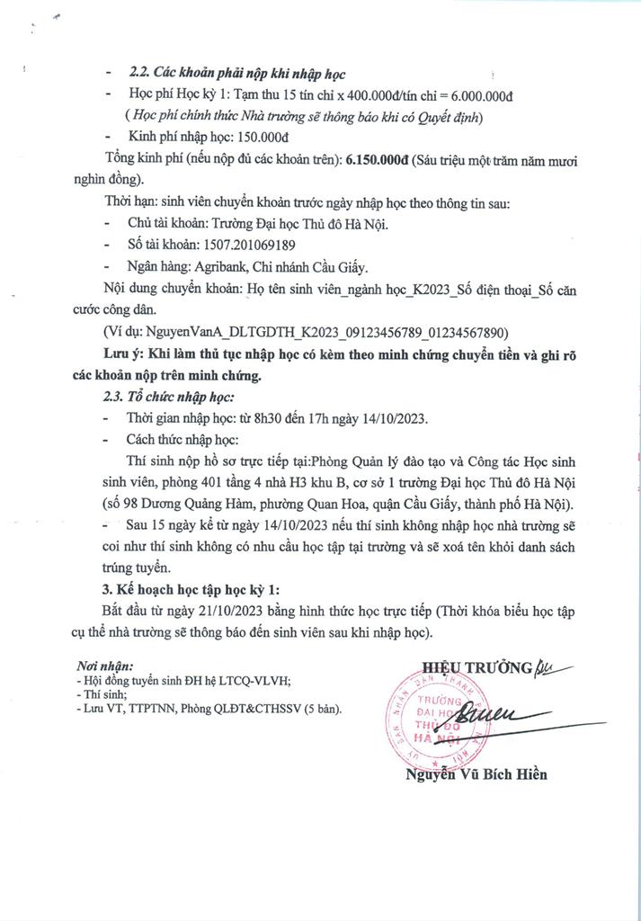 Đề án tuyển sinh trường Đại học Thủ đô Hà Nội 2024