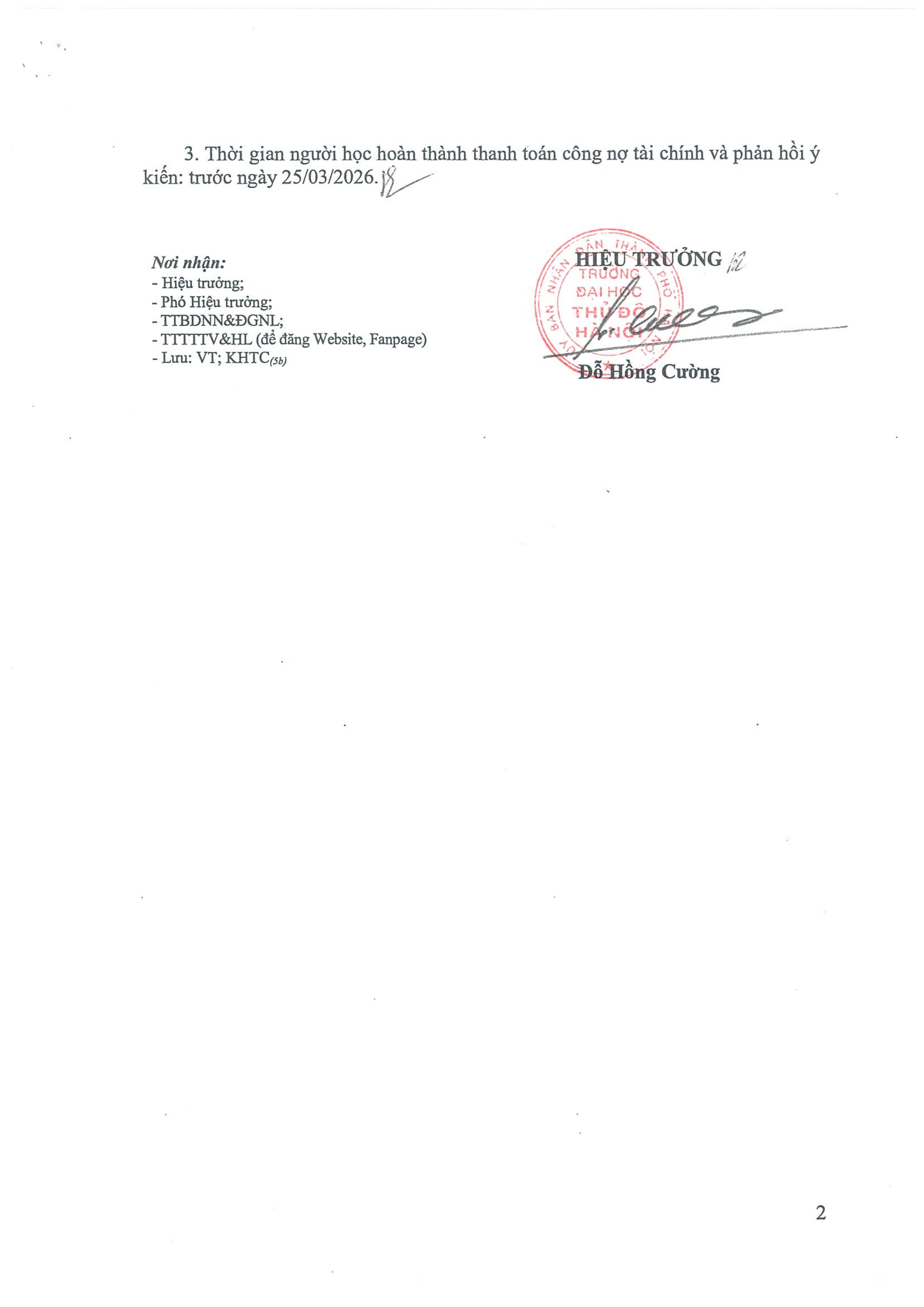 Thông báo kiểm tra số liệu công nợ tài chính của người học Hệ đào tạo Đại học…