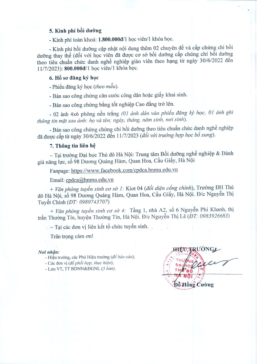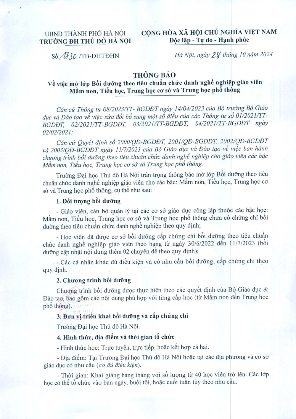 Đề án tuyển sinh trường Đại học Thủ đô Hà Nội 2024