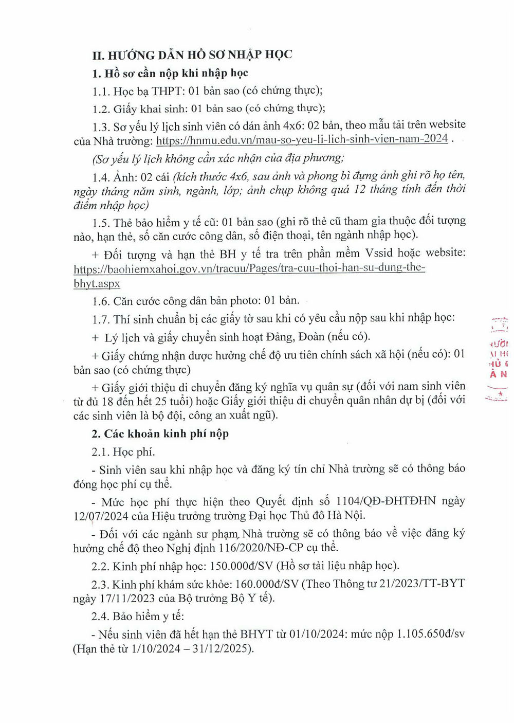 Hướng dẫn nhập học đối với thí sinh trúng tuyển