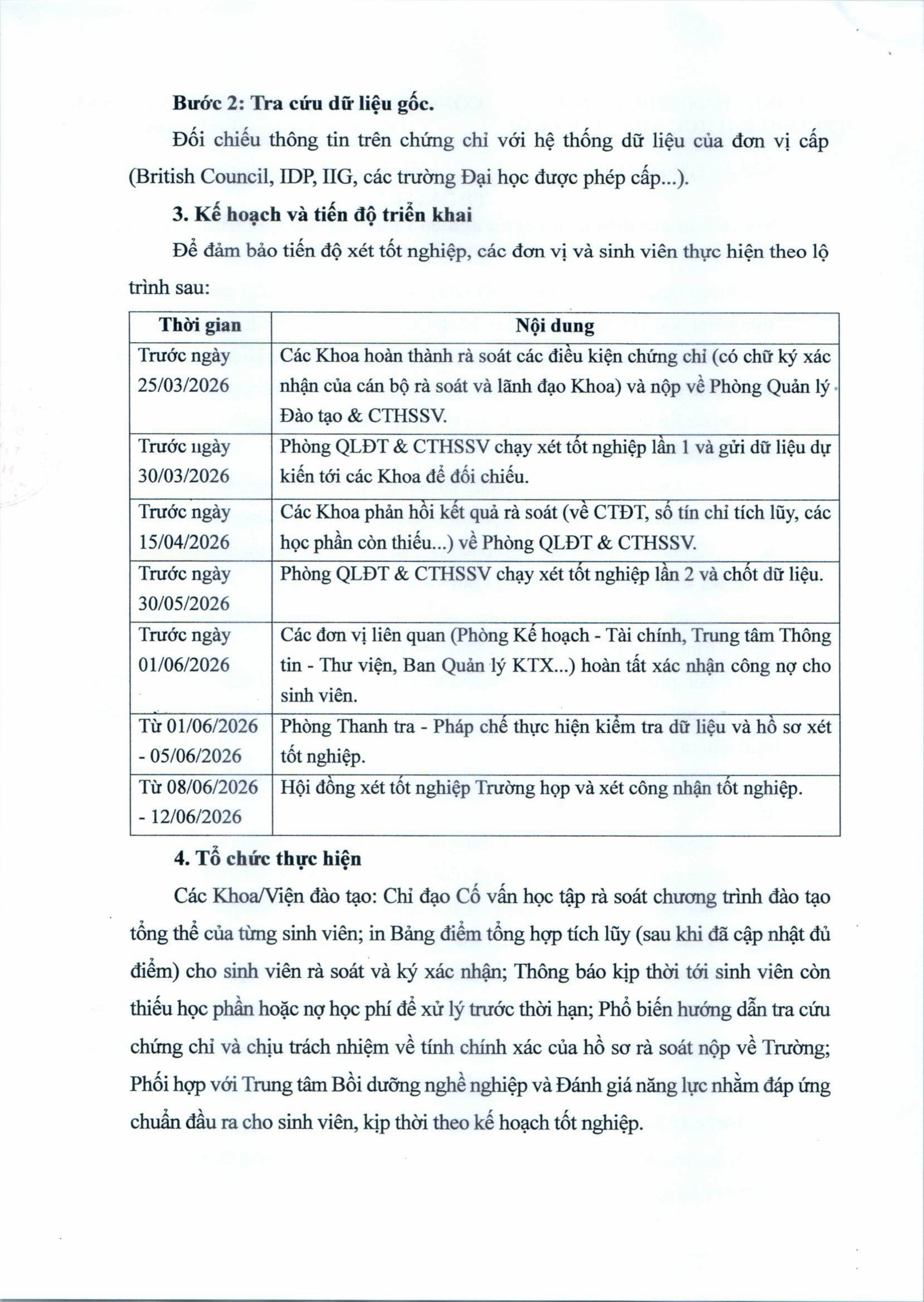 Thông báo rà soát các điều kiện xét tốt nghiệp và hướng dẫn quy trình xác thực văn bằng, chứng chỉ Ngoại ngữ - Tin học