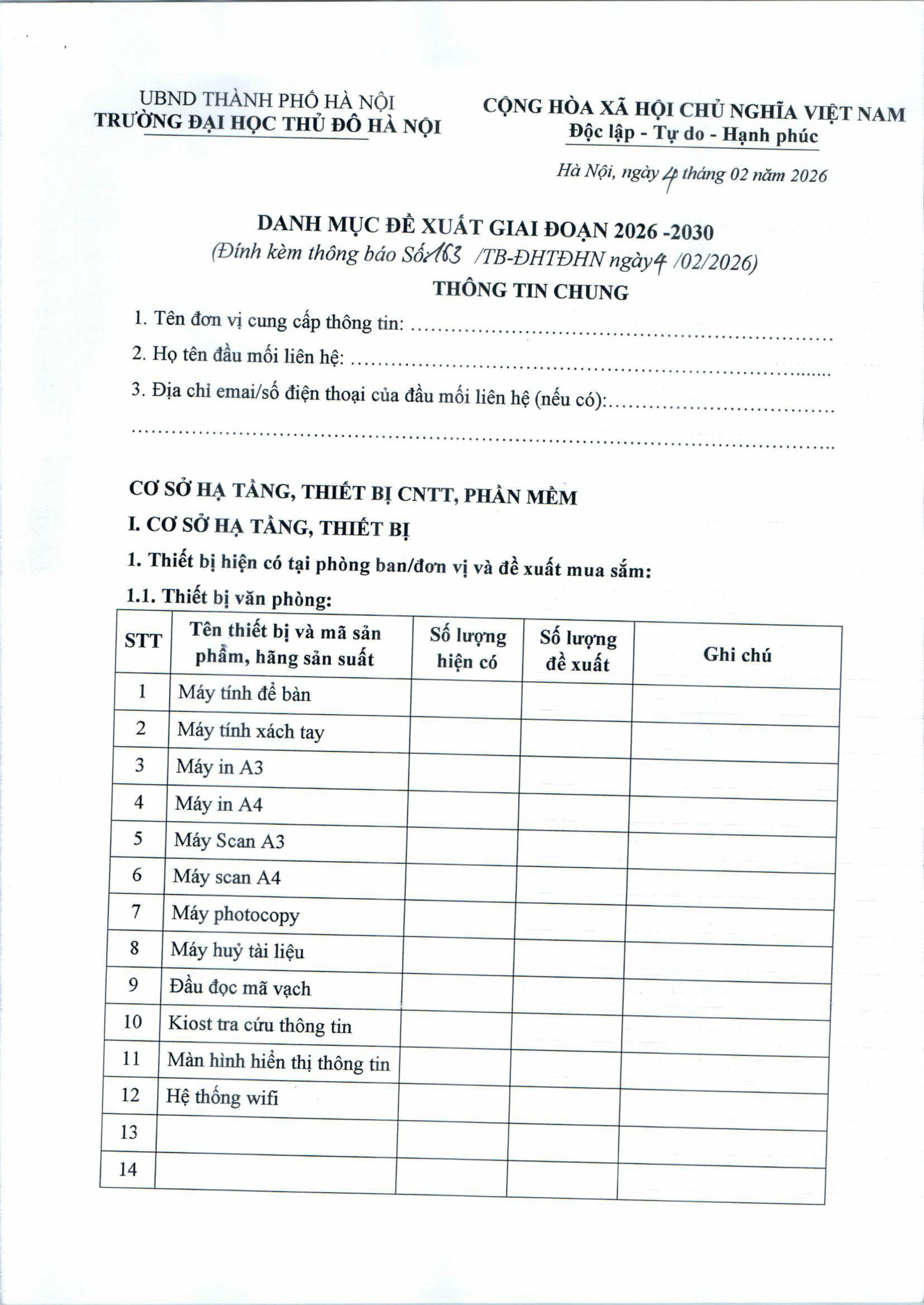 Thông báo rà soát các hạng mục chuyển đổi số của các đơn vị giai đoạn 2026-2030