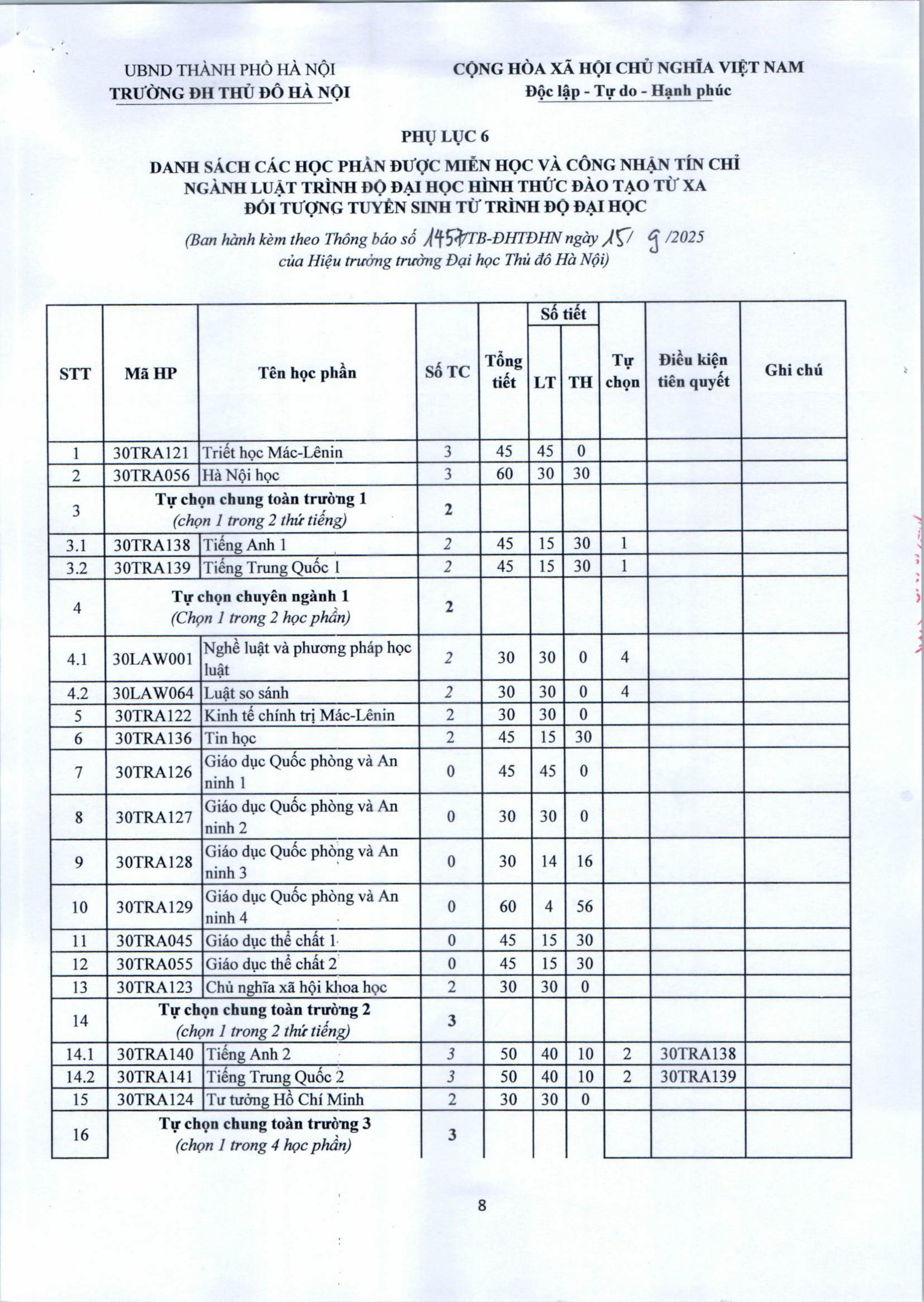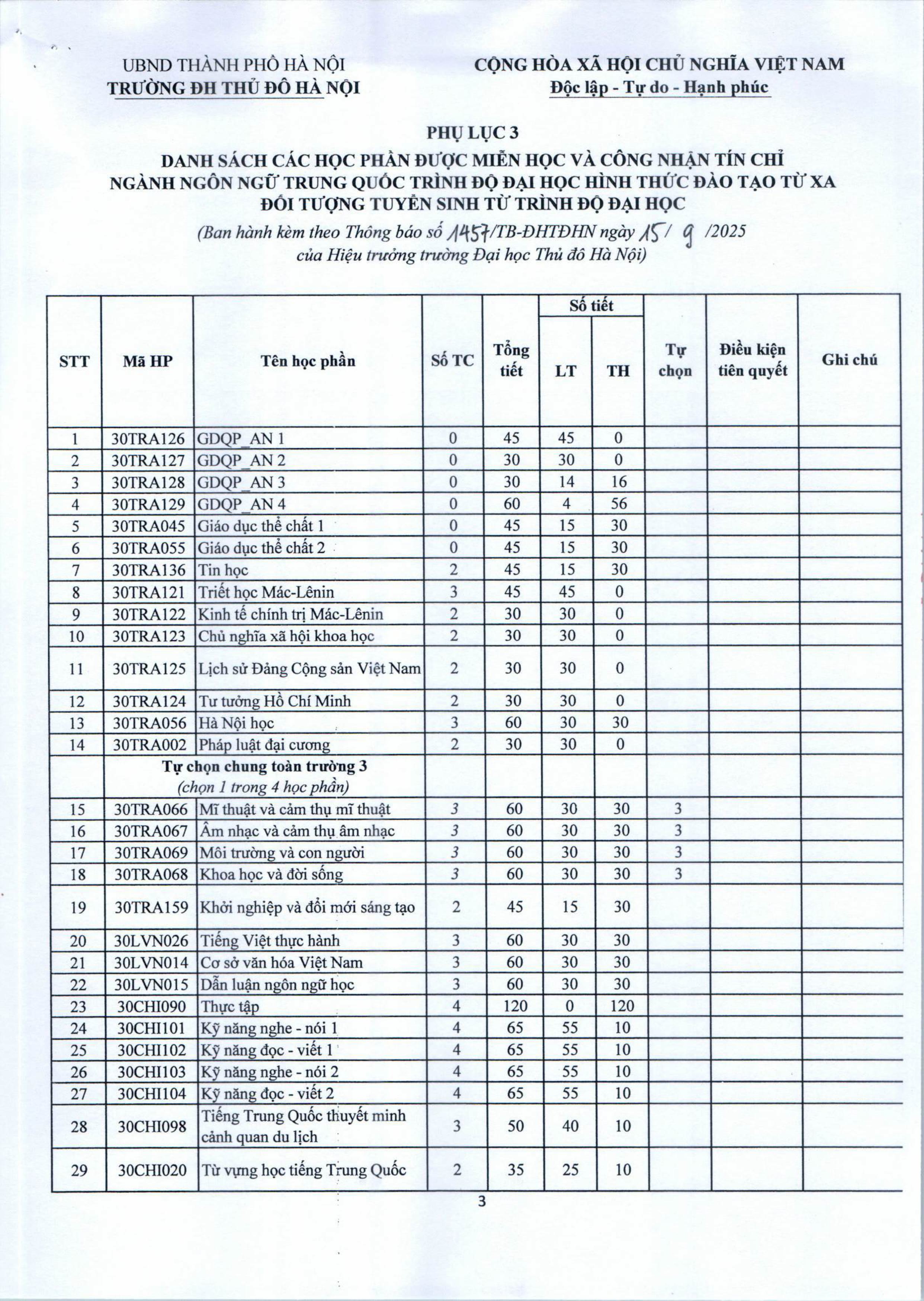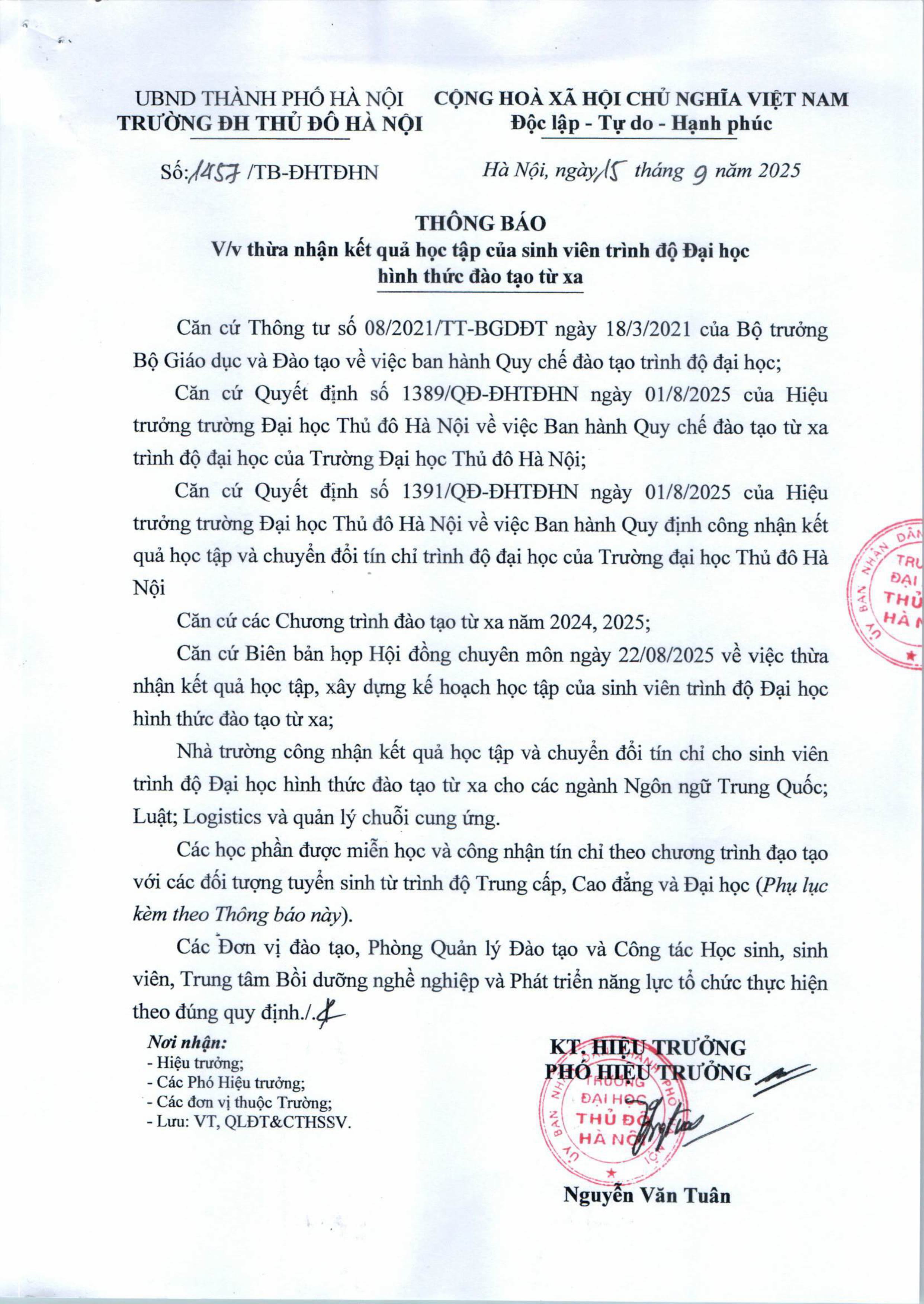 THÔNG BÁO Thừa nhận kết quả học tập của sinh viên Trình độ Đại học hình thức đào tạo từ xa