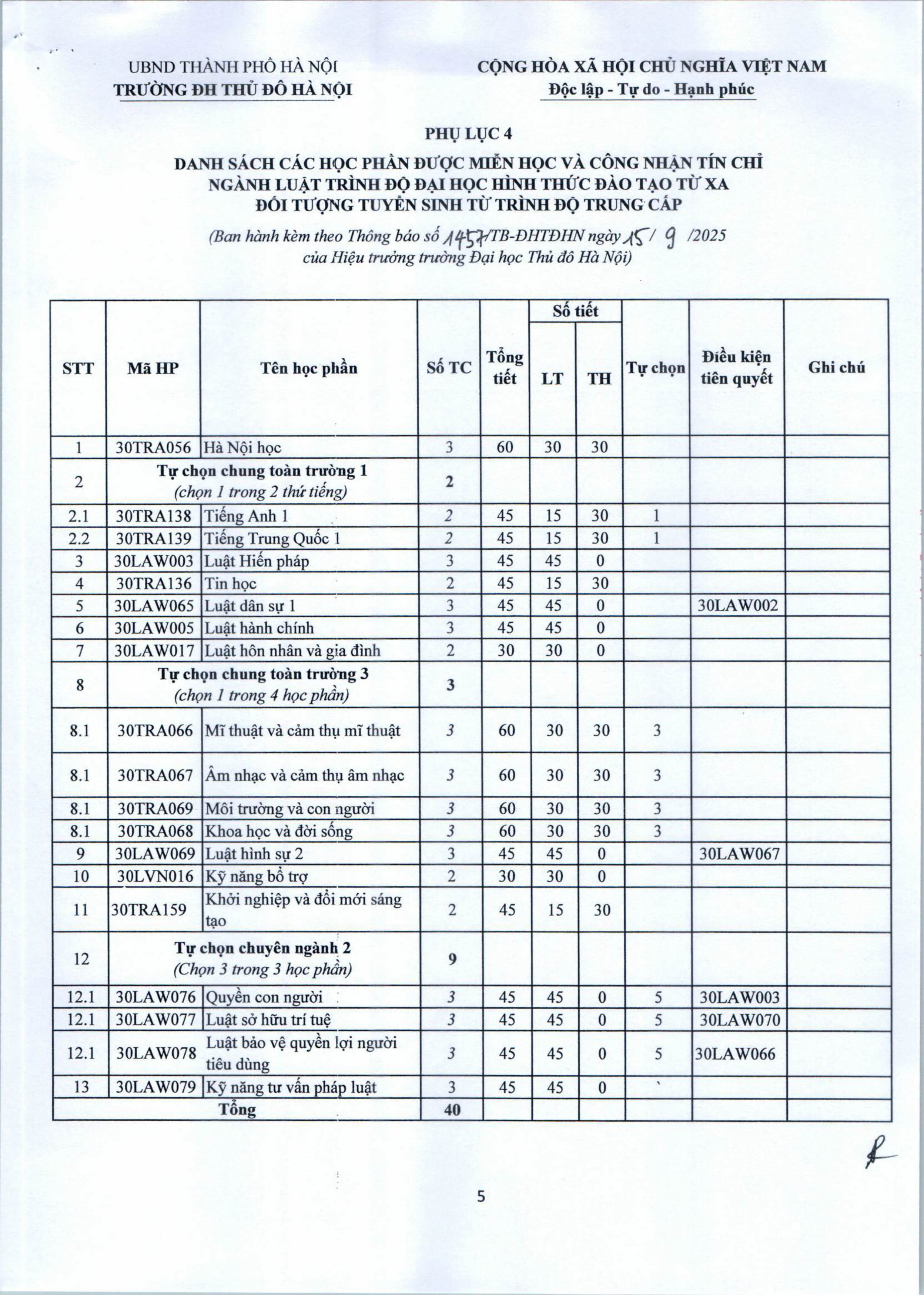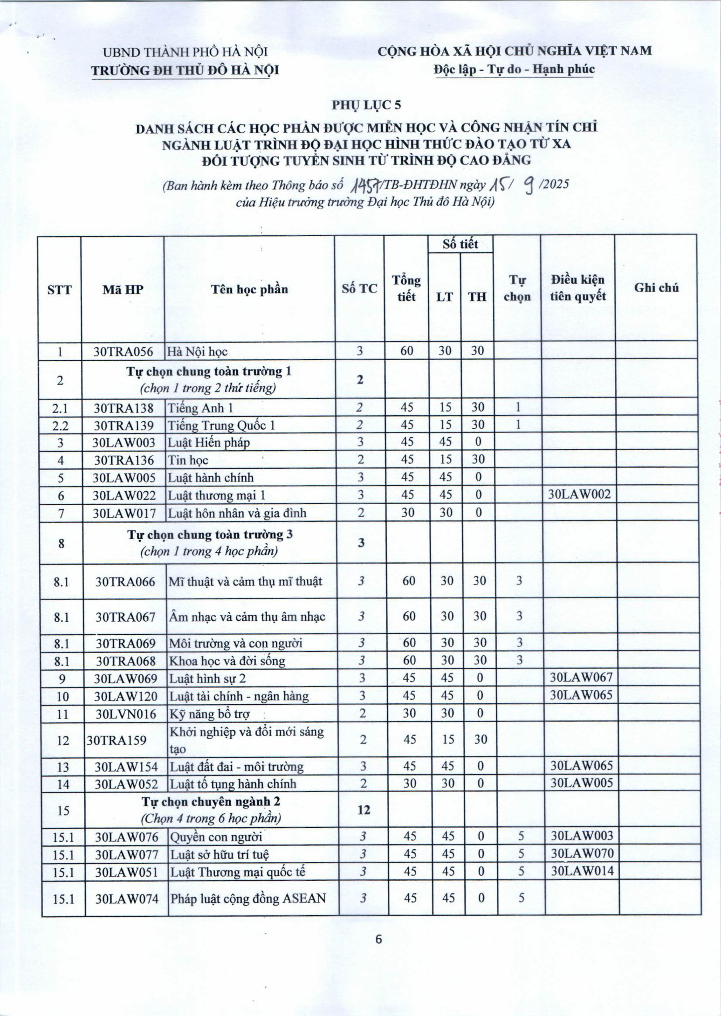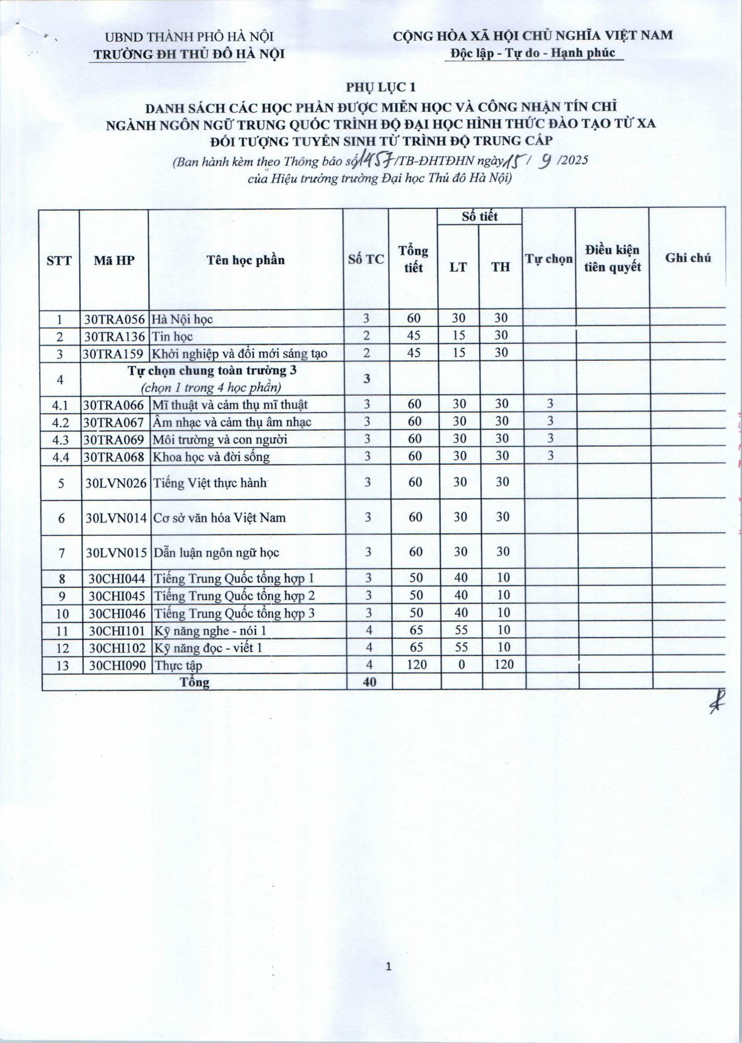 THÔNG BÁO Thừa nhận kết quả học tập của sinh viên Trình độ Đại học hình thức đào tạo từ xa