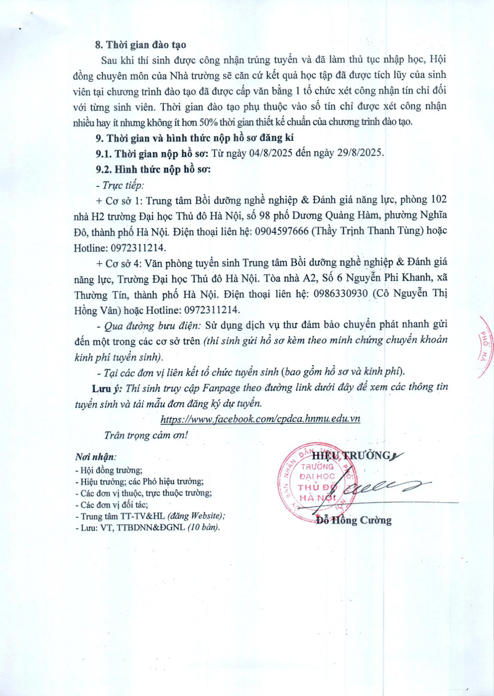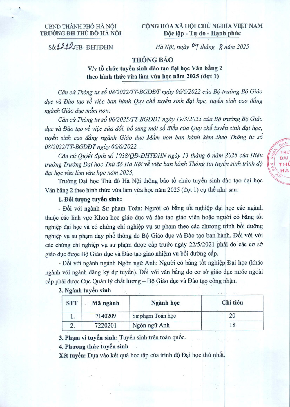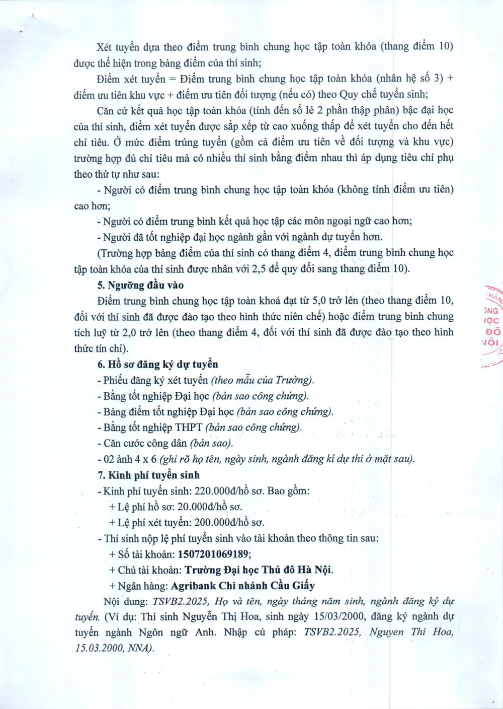 Đề án tuyển sinh trường Đại học Thủ đô Hà Nội 2024