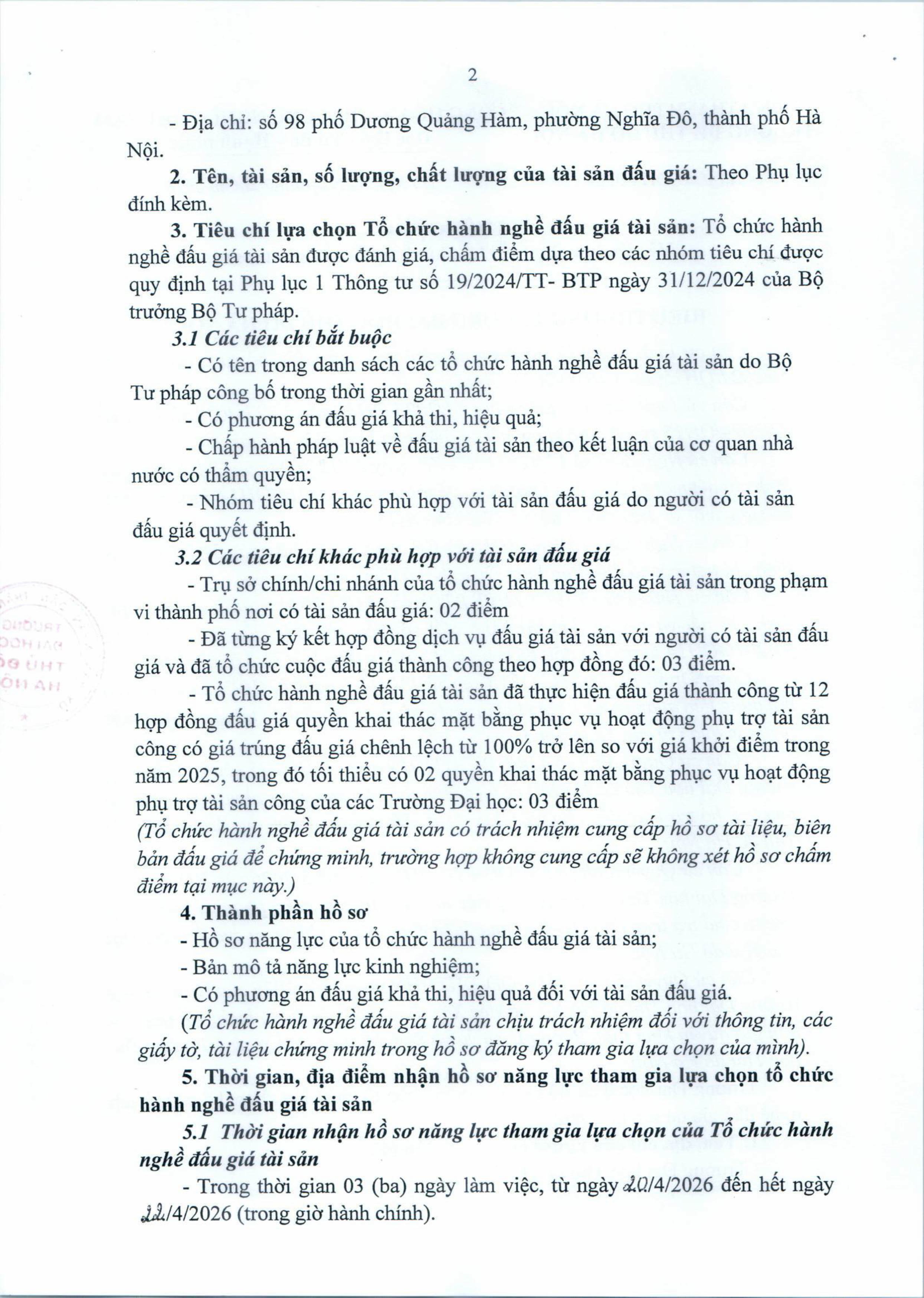 Thông báo về lựa chọn tổ chức hành nghề đấu giá tài sản