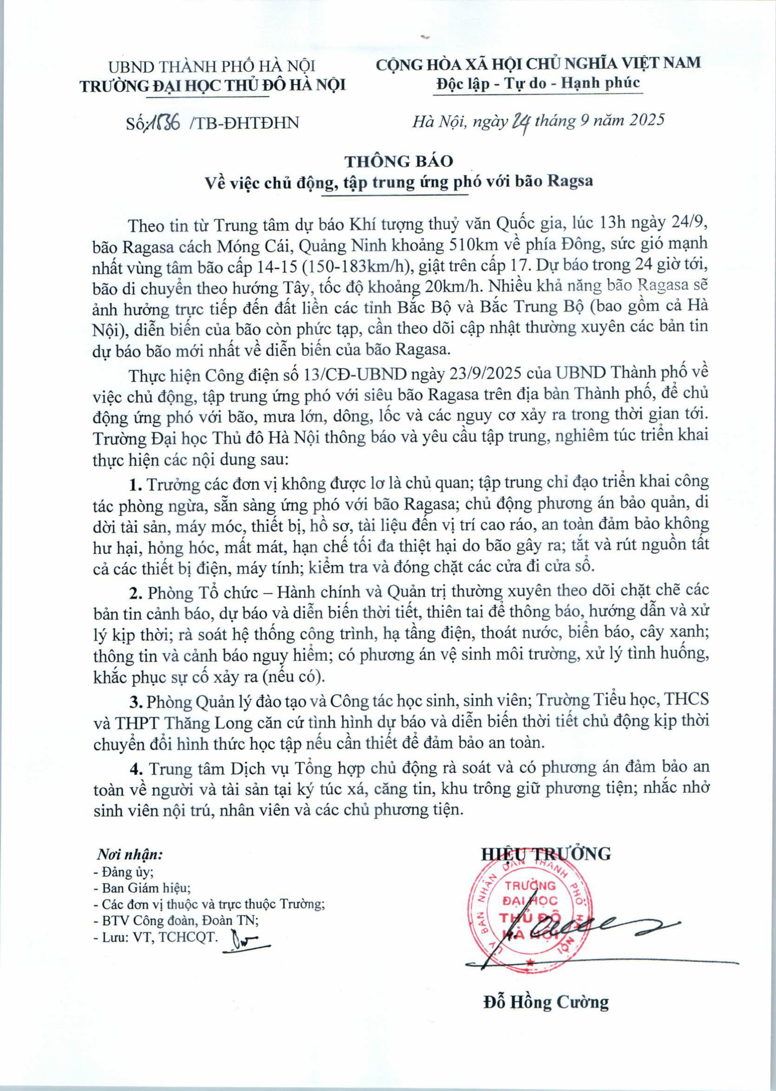 Thông báo về việc chủ động, tập trung ứng phó với bão Ragsa