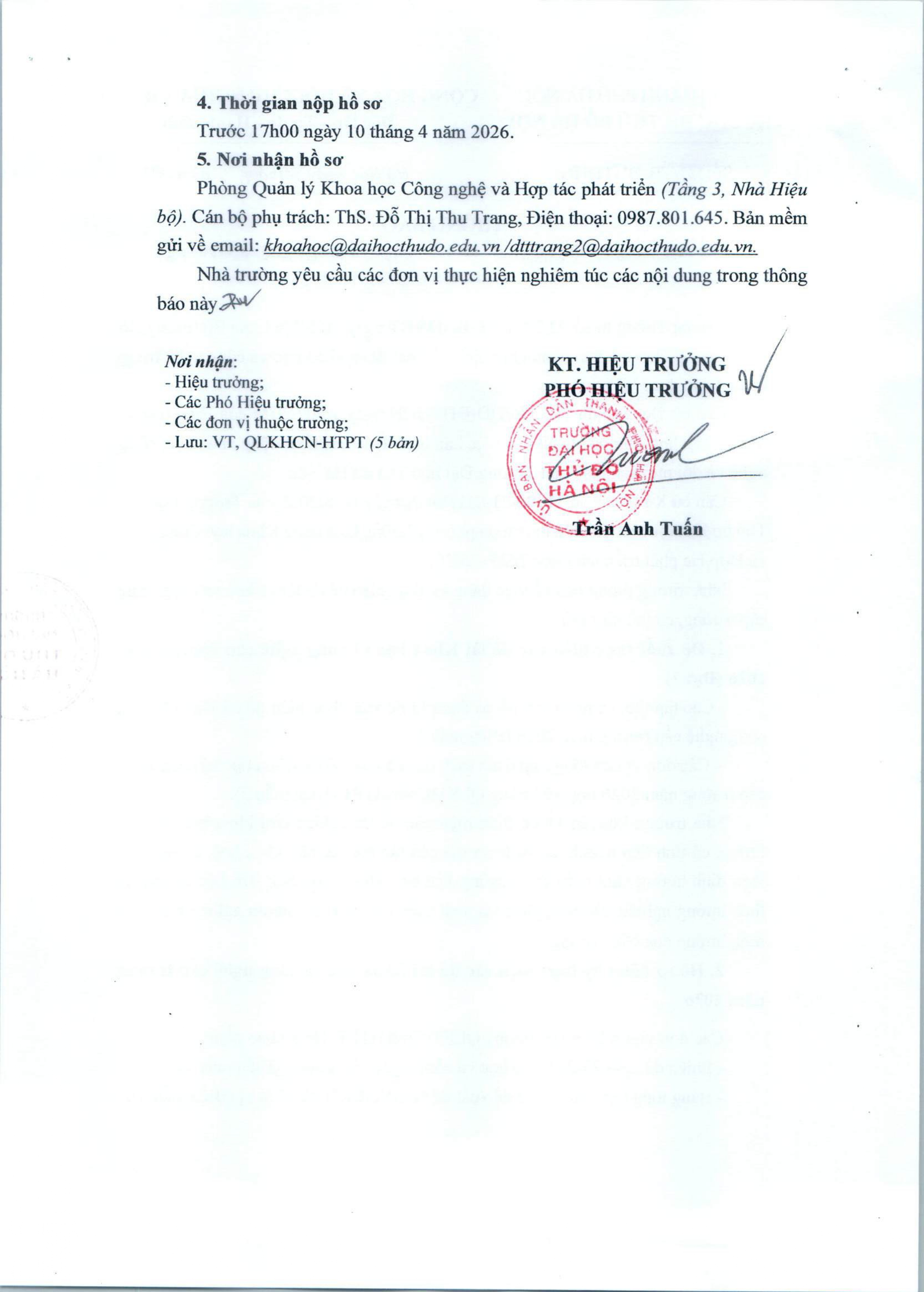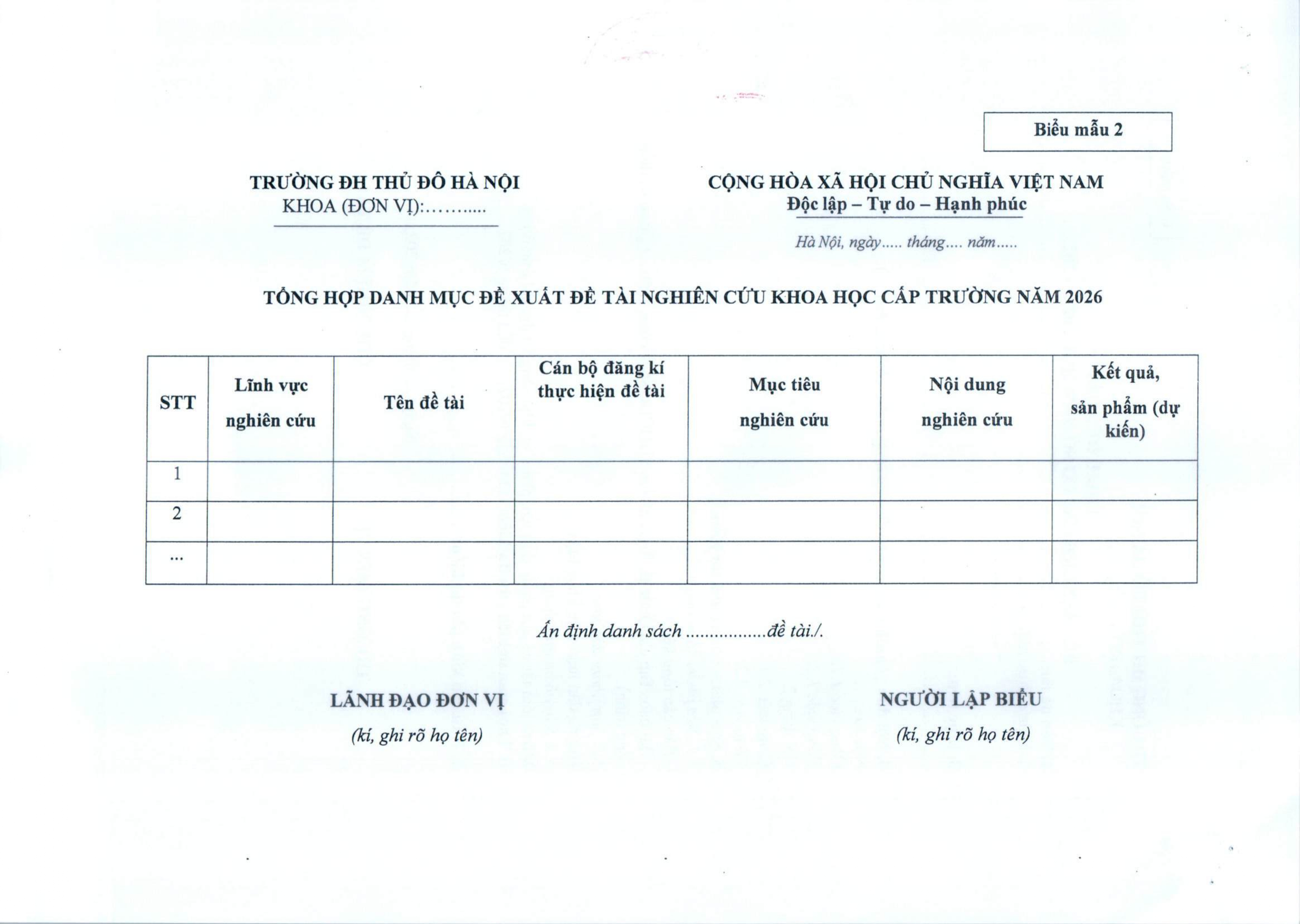 Thông báo về việc đăng ký thực hiện đề tài Khoa học và công nghệ cấp trường năm 2026 (Đợt 2)
