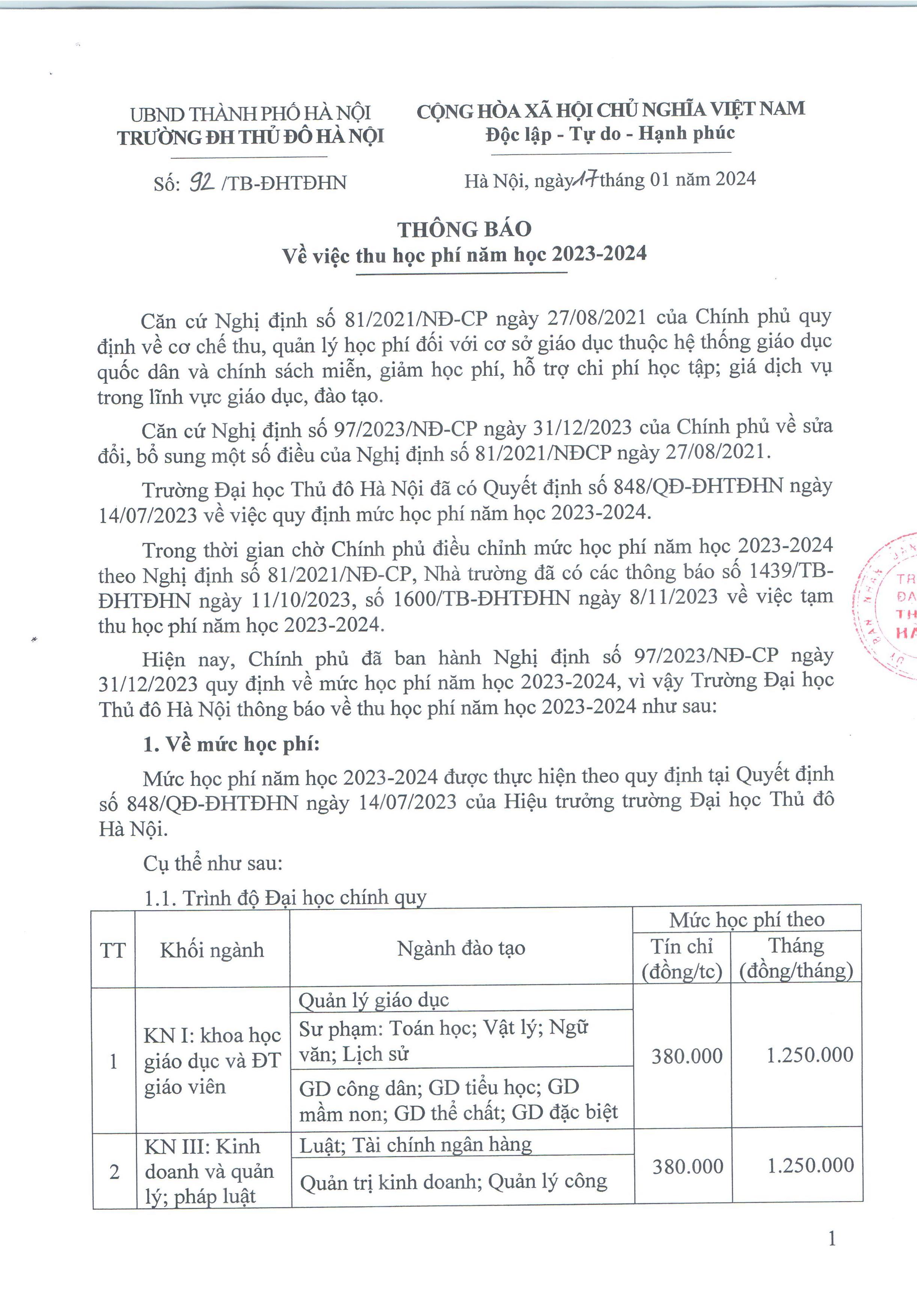 Đề án tuyển sinh trường Đại học Thủ đô Hà Nội 2024