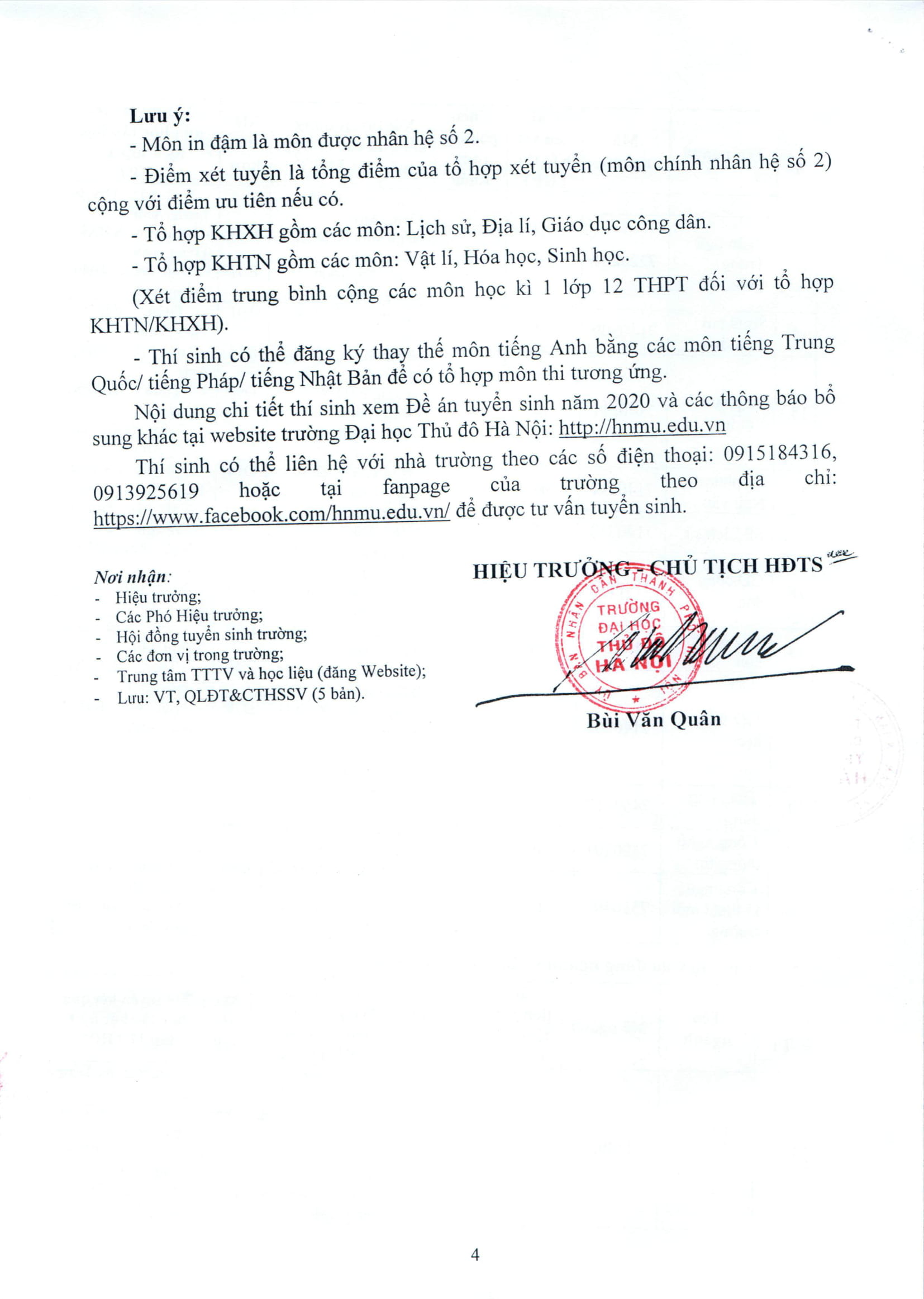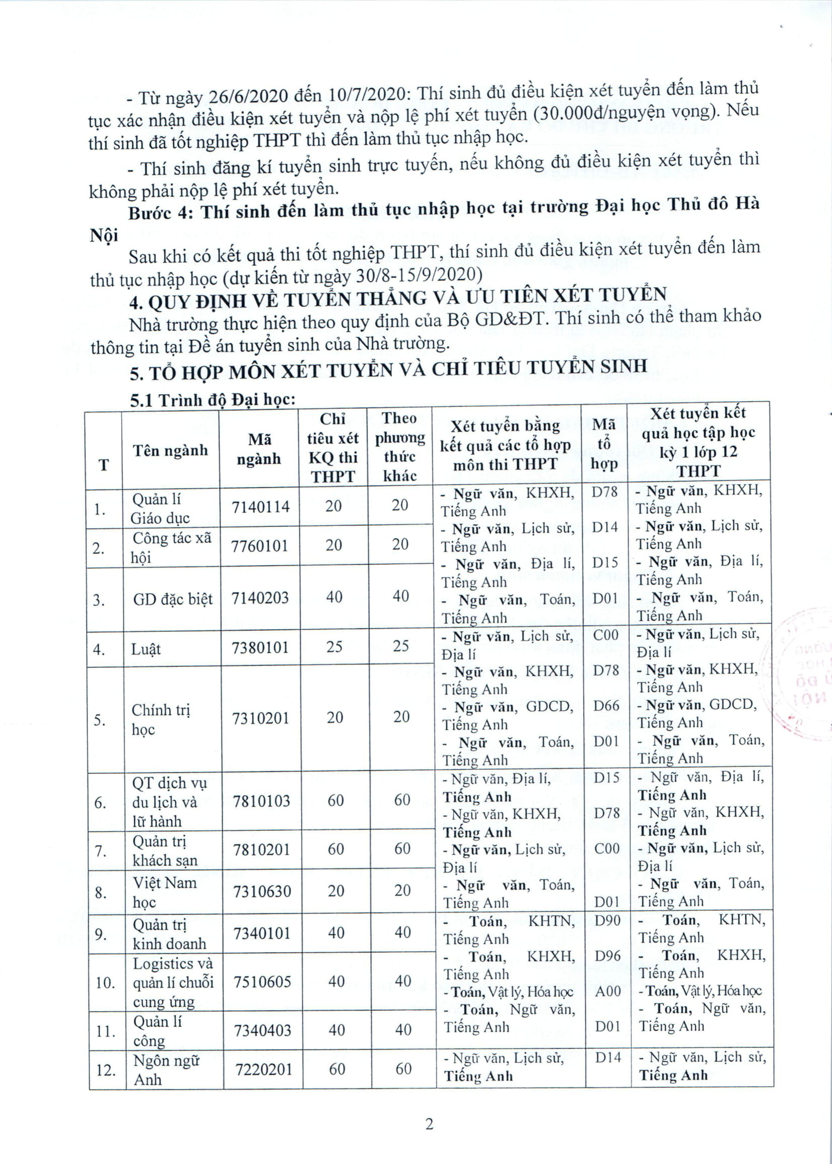 Đề án tuyển sinh trường Đại học Thủ đô Hà Nội 2024