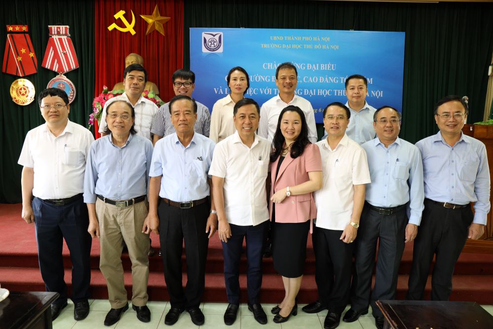 Sáng 13/6, Trường Đại học Thủ đô Hà Nội đã có buổi làm việc với đại diện Hiệp hội các trường đại học, cao đẳng Việt Nam. Tham dự buổi làm việc có ông Phạm Ngọc Lan, Trưởng ban Công tác Hội viên, Hiệp hội các trường đại học, cao đẳng Việt Nam; các hội viên của Hiệp hội; PGS.TS. Đỗ Hồng Cường, Hiệu trưởng Trường Đại học Thủ đô Hà Nội; TS. Bùi Quốc Hoàn, Phó Hiệu trưởng Nhà trường; ThS. Nguyễn Thị Thuý, nguyên Phó Hiệu trưởng Trường Cao đẳng Sư phạm Hà Tây – Phó Chủ tịch Hội đồng trường Trường Đại học Thủ đô Hà Nội; lãnh đạo một số đơn vị trong trường.