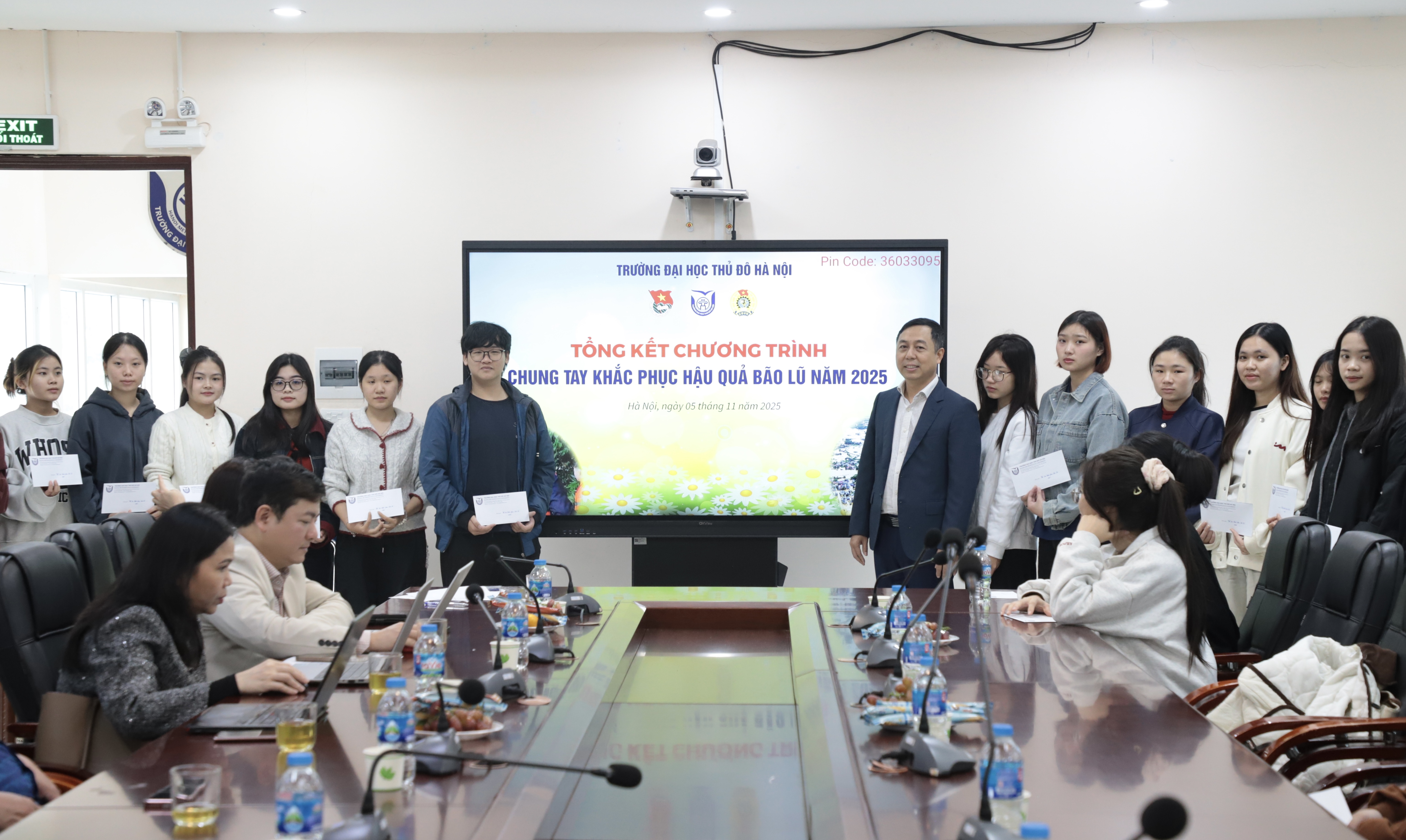 Sáng ngày 5/11, Công đoàn và Đoàn Thanh niên Trường Đại học Thủ đô Hà Nội đã phối hợp tổ chức chương trình tổng kết “Chung tay khắc phục hậu quả bão lũ năm 2025” và trao hỗ trợ tới sinh viên chịu ảnh hưởng của thiên tai.