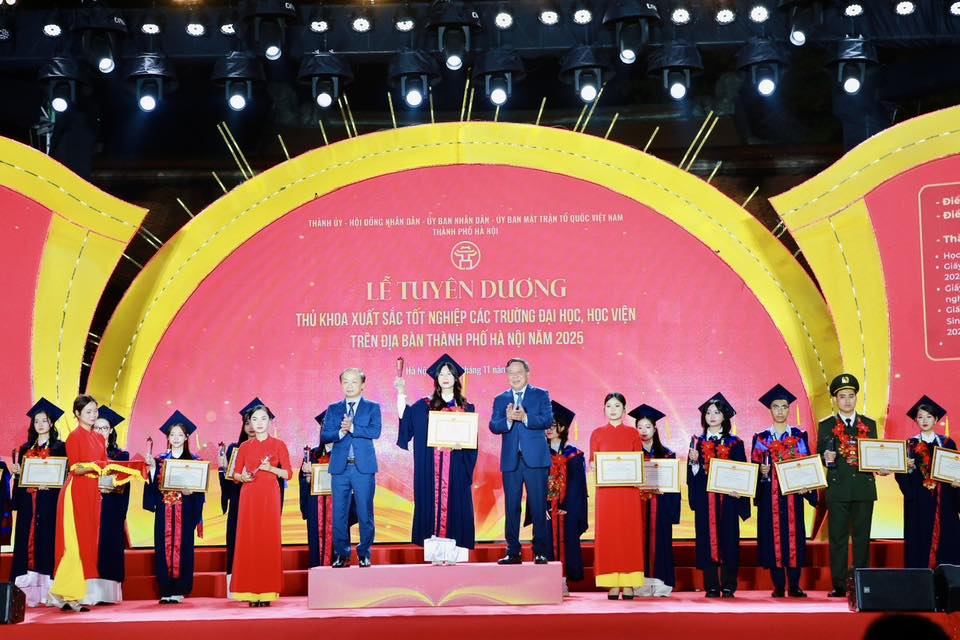 Tối ngày 14/11/2025, tại Văn Miếu – Quốc Tử Giám, Thành phố Hà Nội long trọng tổ chức Lễ tuyên dương 95 Thủ khoa xuất sắc tốt nghiệp các trường đại học, học viện trên địa bàn. Đây là hoạt động thường niên nhằm tôn vinh những sinh viên Thủ đô có thành tích học tập và rèn luyện nổi bật, thể hiện trí tuệ, bản lĩnh và khát vọng cống hiến cho cộng đồng.