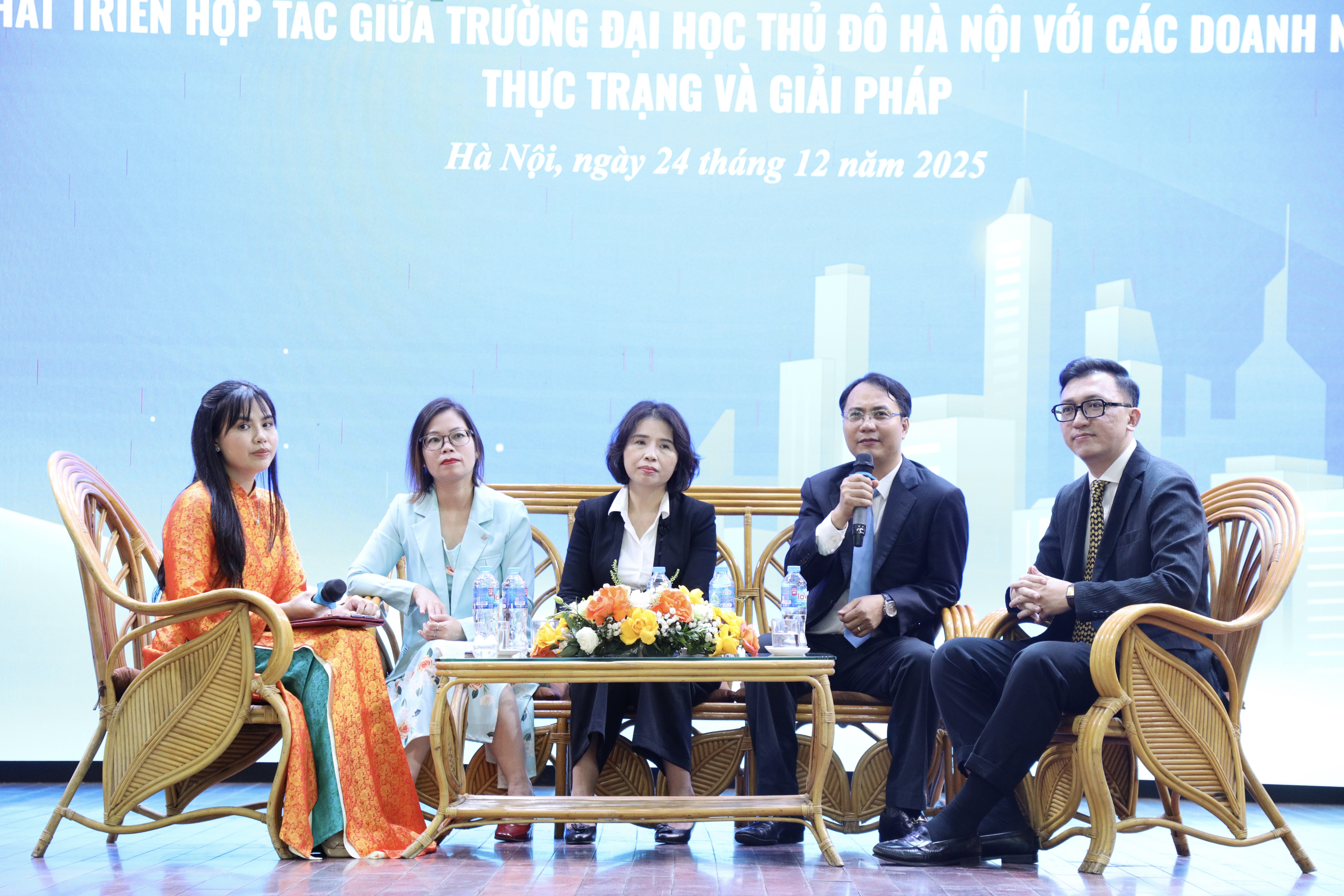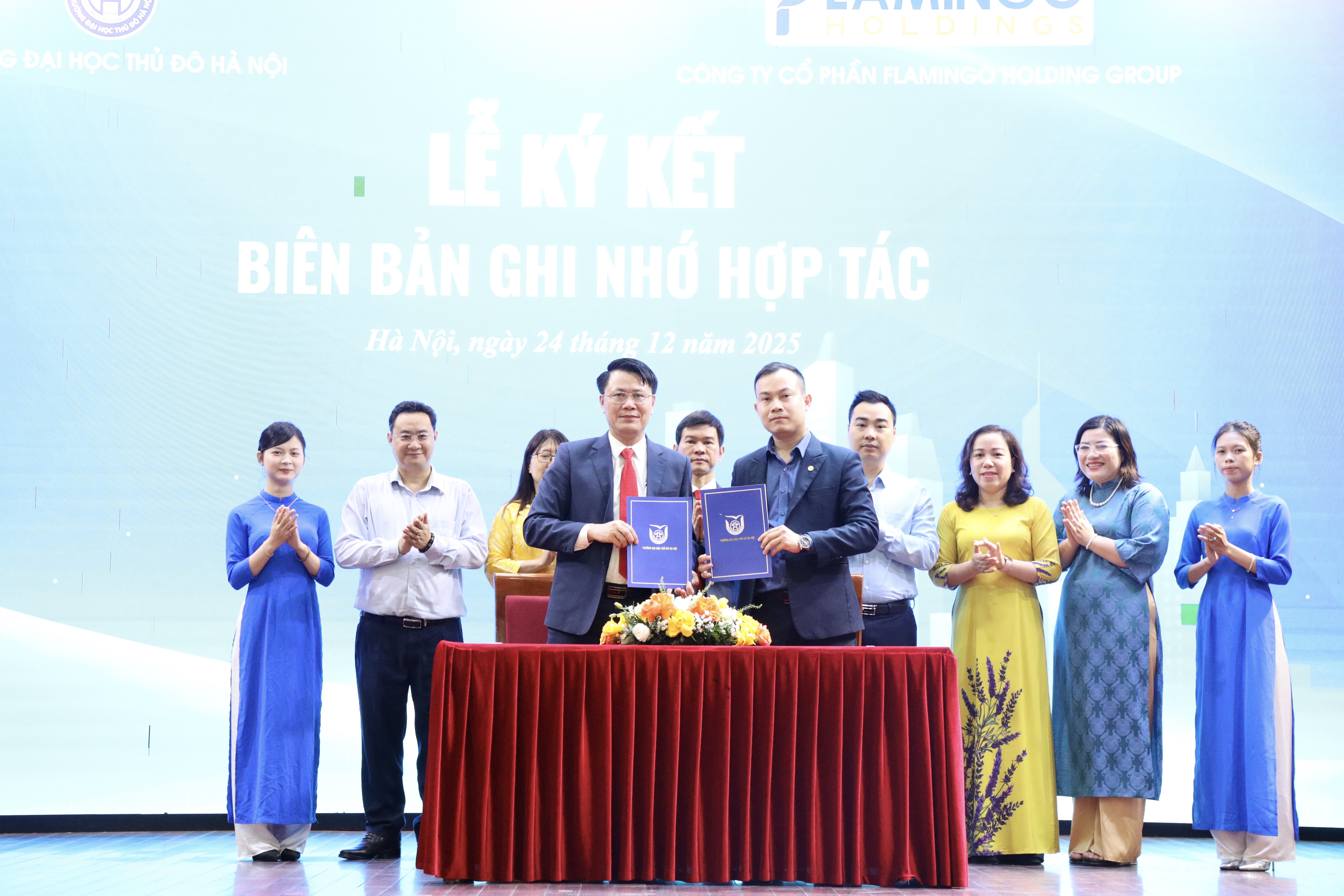Sáng ngày 24/12/2025, tại Hội trường lớn, Trường Đại học Thủ đô Hà Nội đã long trọng tổ chức “Lễ ký kết biên bản ghi nhớ hợp tác và Tọa đàm khoa học” với chủ đề: “Phát triển hợp tác giữa Trường Đại học Thủ đô Hà Nội với các doanh nghiệp: Thực trạng và Giải pháp”. Sự kiện đánh dấu bước tiến quan trọng trong việc gắn kết đào tạo lý thuyết với thực tiễn nghề nghiệp, mở ra cơ hội vàng cho sinh viên nhà trường.