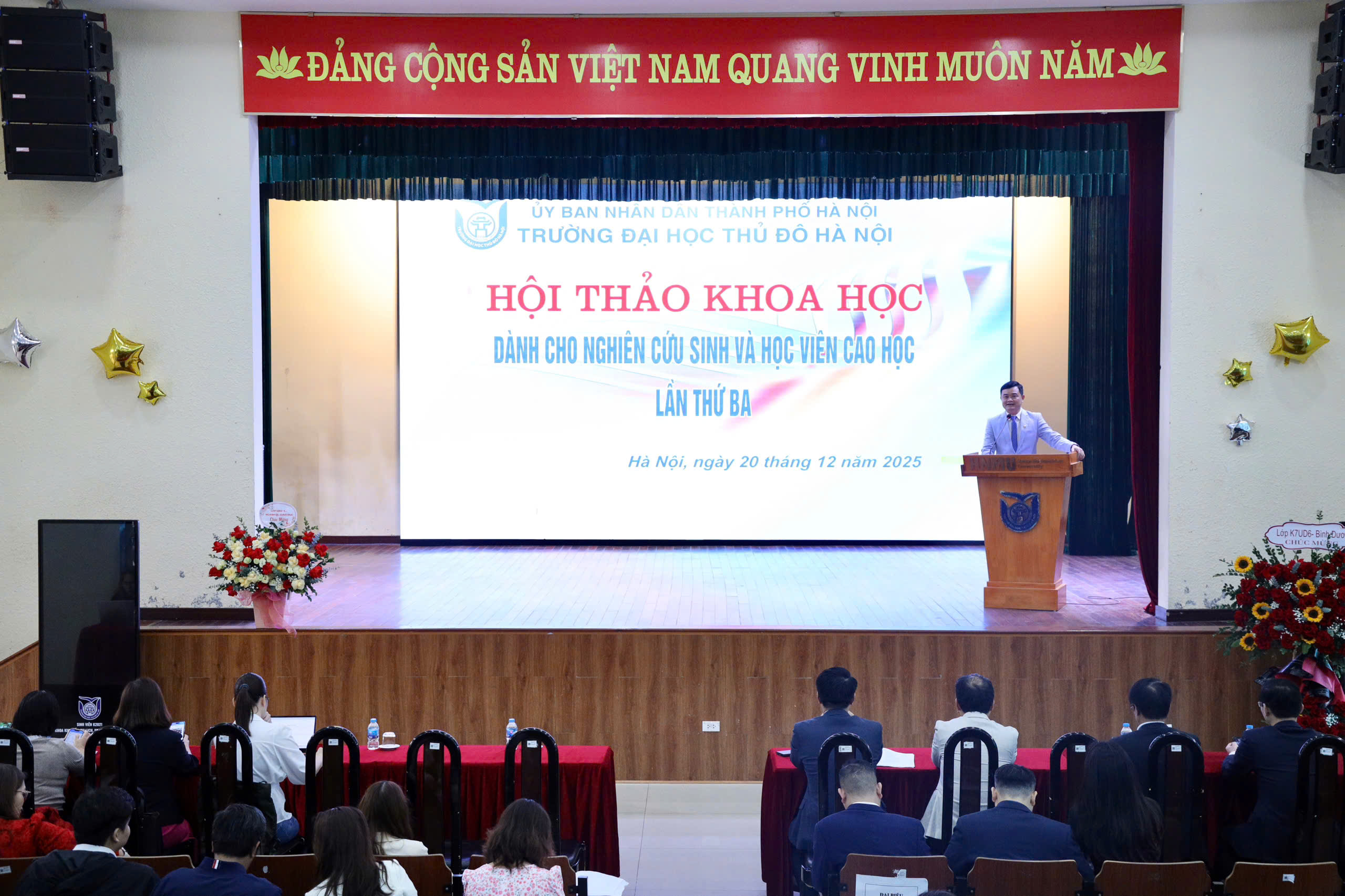 Sáng ngày 20/12, Trường Đại học Thủ đô Hà Nội đã tổ chức Hội thảo khoa học dành cho nghiên cứu sinh (NCS) và học viên cao học (HVCH) lần thứ 3. Tham dự Hội thảo có các Phó Hiệu trưởng Nhà trường: PGS.TS. Nguyễn Văn Tuân, TS. Bùi Quốc Hoàn, lãnh đạo các đơn vị, cán bộ, giảng viên cùng các NCS, HVCH và sinh viên trong trường.