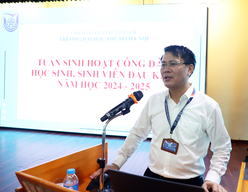Trong thời gian diễn ra “Tuần sinh hoạt công dân – Học sinh sinh viên” đầu khóa, đại diện Ban Giám hiệu Nhà trường đã có buổi gặp mặt với tân sinh viên khóa 2024; trao đổi về trách nhiệm của sinh viên trong việc bảo vệ, xây dựng, phát huy truyền thống 65 năm Trường Đại học Thủ đô Hà Nội: Tự hào truyền thống – Kiến tạo tương lai. Sinh viên được phổ biến về chiến lược phát triển Nhà trường và sứ mạng, tầm nhìn, giá trị cốt lõi, triết lý giáo dục của Trường Đại học Thủ đô Hà Nội. Phổ biến các quy chế, quy định đào tạo; hướng dẫn sử dụng cổng thông tin, phần mềm đào tạo để thực hiện hoạt động học tập: đăng kí tín chỉ; xem lịch học; lịch thi; xem chương trình đào tạo;… Cùng với đó, sinh viên được nắm bắt một số nội dung về đáp ứng chuẩn đầu ra năng lực ngoại ngữ; những quy định về nghĩa vụ tài chính của sinh viên đối với Nhà trường; tuyên truyền về việc chấp hành các quy định pháp luật; xây dựng văn hóa giao thông an toàn cho sinh viên; Luật an ninh mạng; các nội dung về phòng cháy chữa cháy. Phổ biến một số nội dung về công tác sinh viên: nội quy, quy định Nhà trường; chế độ chính sách của sinh viên; học bổng; khen thưởng…các thông tin y tế; trang bị một số kỹ năng sống, giáo dục sức khỏe sinh sản cho sinh viên nữ Trường Đại học Thủ đô Hà Nội. Phổ biến về liêm chính học thuật và việc thực hiện liêm chính học thuật tại Trường Đại học Thủ đô Hà Nội. Các quy trình tổ chức thi; phúc khảo bài thi, thi lại. Giới thiệu về hoạt động thư viện và hướng dẫn sinh viên tra cứu thông tin.