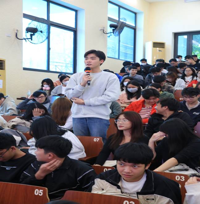 Sinh viên đã có cơ hội lắng nghe đại diện doanh nghiệp chia sẻ về xu hướng thị trường lao động, yêu cầu của ngành nghề và những cơ hội phát triển trong lĩnh vực Toán ứng dụng và Công nghệ thông tin. Đặc biệt, Hội thảo chuyên đề "Sử dụng AI trong nghề nghiệp Toán ứng dụng và Công nghệ thông tin" do TS. Nguyễn Văn Vinh trình bày đã thu hút sự quan tâm lớn từ các bạn trẻ.