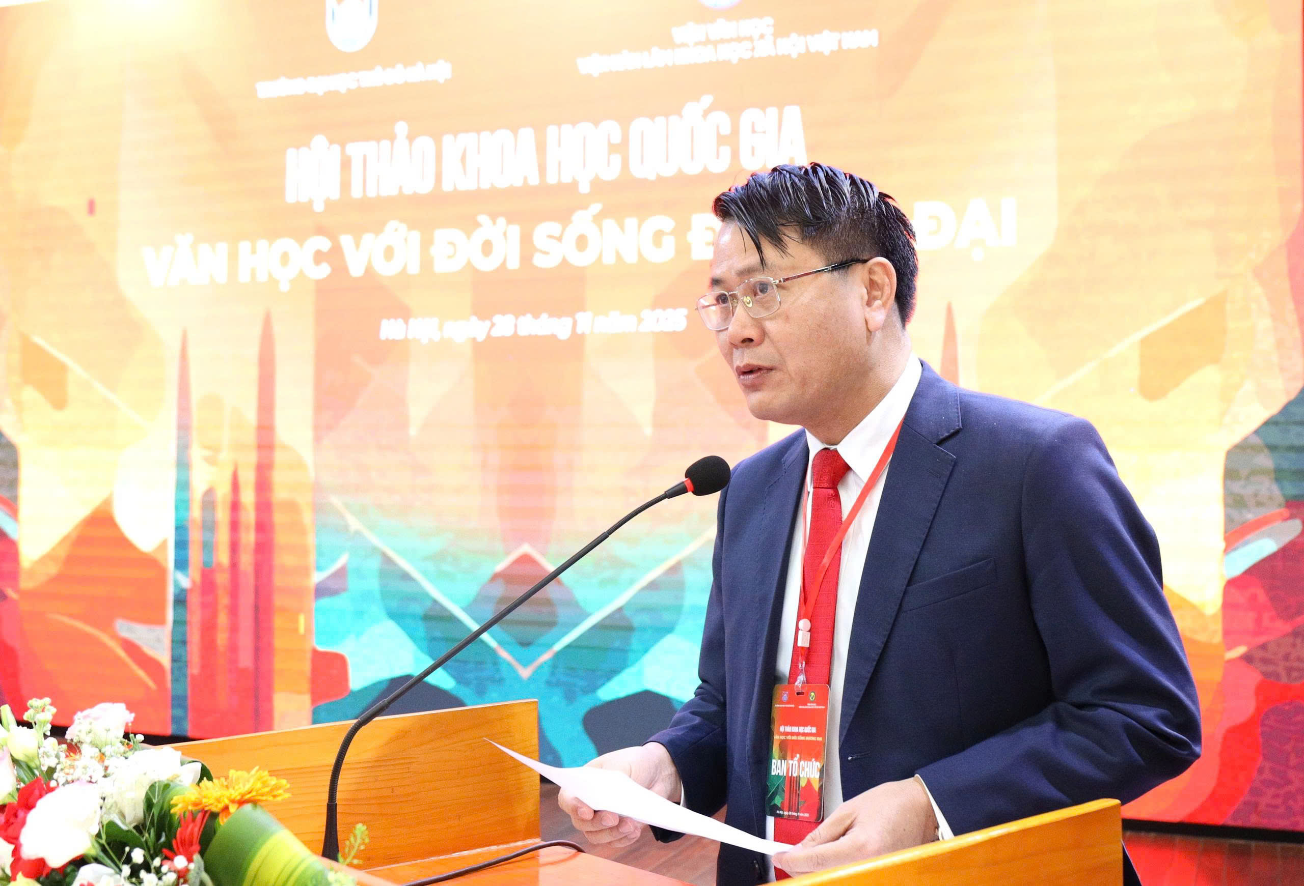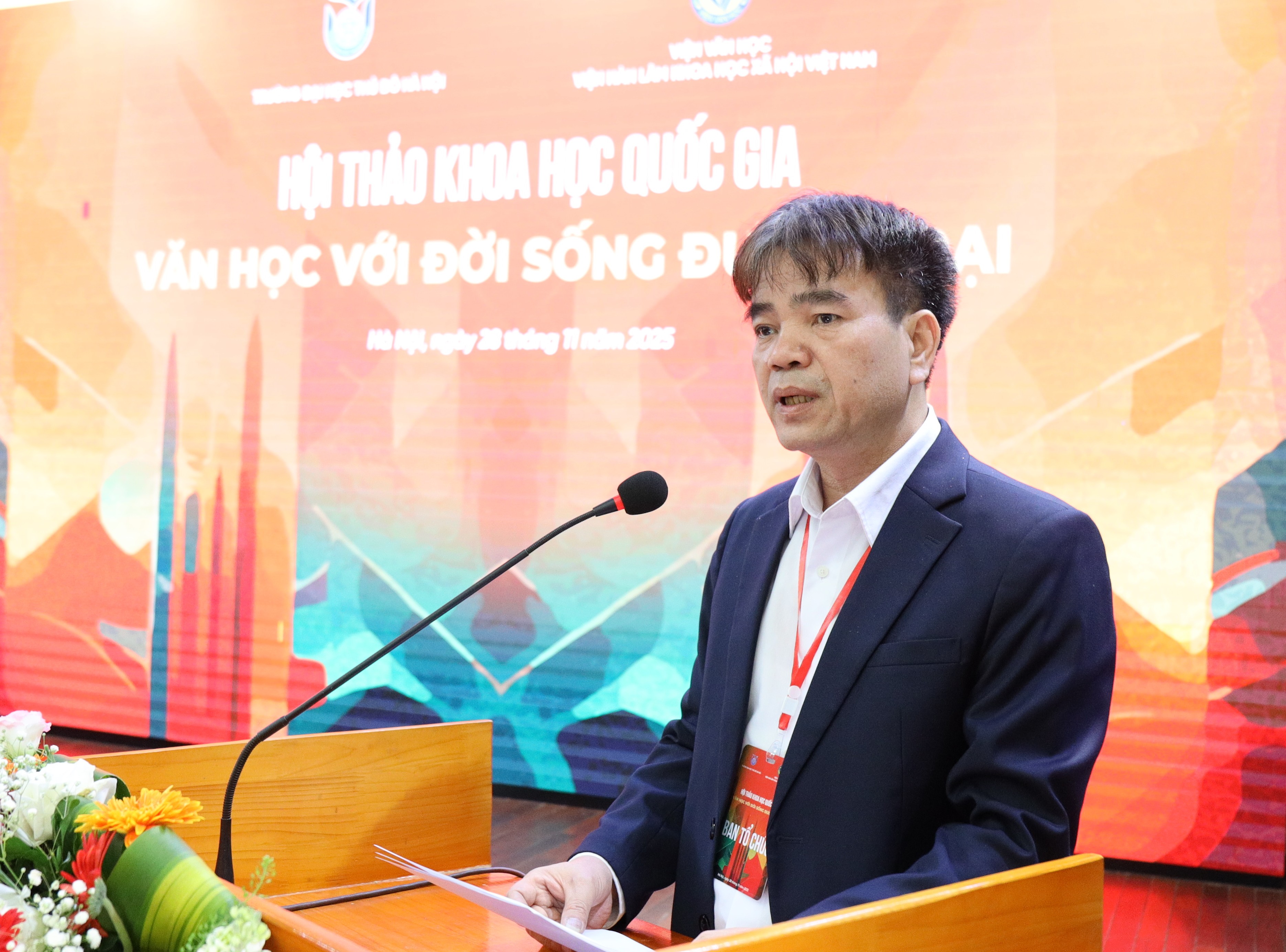 Phát biểu khai mạc Hội thảo, PGS.TS Nguyễn Văn Tuân, Phó Hiệu trưởng Trường Đại học Thủ đô Hà Nội nhấn mạnh, văn học, từ bao đời nay, luôn là tấm gương phản chiếu sâu sắc nhất về thân phận con người, về những biến thiên của xã hội - văn hóa - lịch sử - thời đại; những khát vọng cao đẹp của mỗi dân tộc nói riêng và toàn nhân loại nói chung. Trong bối cảnh đời sống đương đại, khi chúng ta đang chứng kiến những thay đổi chóng mặt của công nghệ, toàn cầu hóa và sự giao thoa văn hóa đa chiều, câu hỏi về vị trí, sứ mệnh, giá trị và khả năng tương tác của Văn học với Đời sống lại càng trở nên cấp thiết.