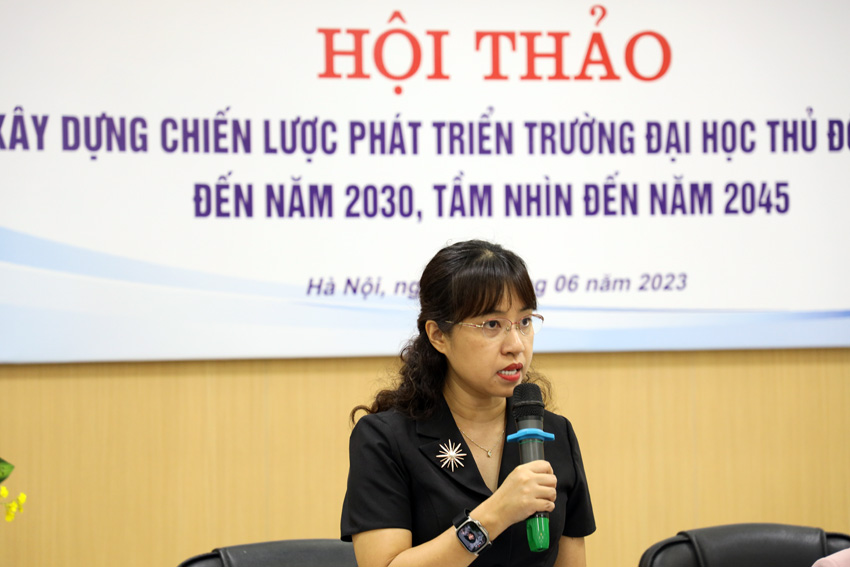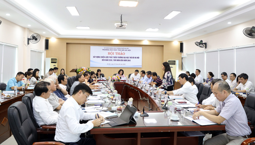 Phát biểu tại Hội thảo, đồng chí Vũ Thu Hà, Phó Chủ tịch UBND TP Hà Nội nhấn mạnh, là cơ sở giáo dục đại học thực hiện nhiệm vụ đào tạo và nghiên cứu khoa học của TP, Trường Đại học Thủ đô Hà Nội cần được tiếp tục quan tâm, tăng cường đầu tư nguồn lực để phát triển thành một trung tâm đào tạo, nghiên cứu khoa học và chuyển giao công nghệ tiên tiến của Hà Nội, vùng Thủ đô và cả nước, góp phần thực hiện một trong những mục tiêu về giáo dục và đào tạo được xác định trong các Nghị quyết, Quyết định của Bộ Chính trị, Chính phủ; của Thành uỷ và UBND TP Hà Nội; đặc biệt là Nghị quyết số 15-NQ/TW của Bộ Chính trị. Ngày 7/10/2022 Thành ủy Hà Nội đã ban hành Quyết định số 3624-QĐ/TU về việc thành lập Ban Chỉ đạo xây dựng Chiến lược phát triển Trường Đại học Thủ đô Hà Nội giai đoạn 2021 - 2030, tầm nhìn đến năm 2045.